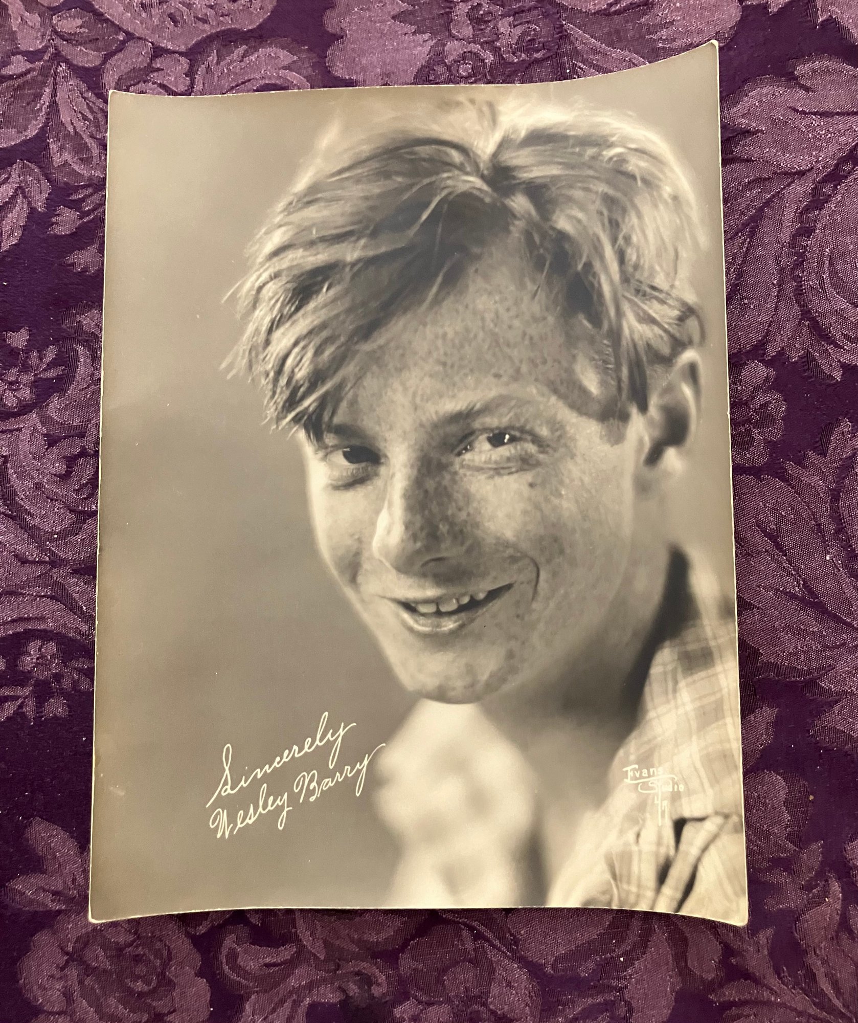 Vintage Hollywood Star Photo - Wesley Barry . 6.5" x 8.75". Heavy paper. Photo is curved at the ends but would lay flat nicely in a frame.