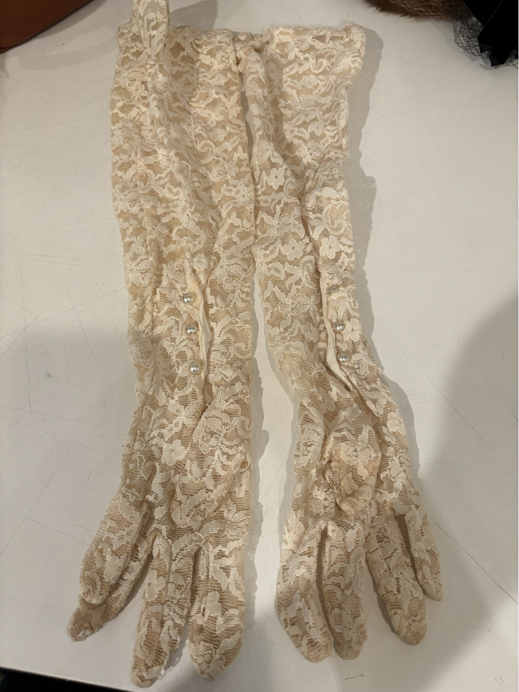 Beautiful Lace and Pearl Evening Cocktail/Opera Gloves, Vintage size small.