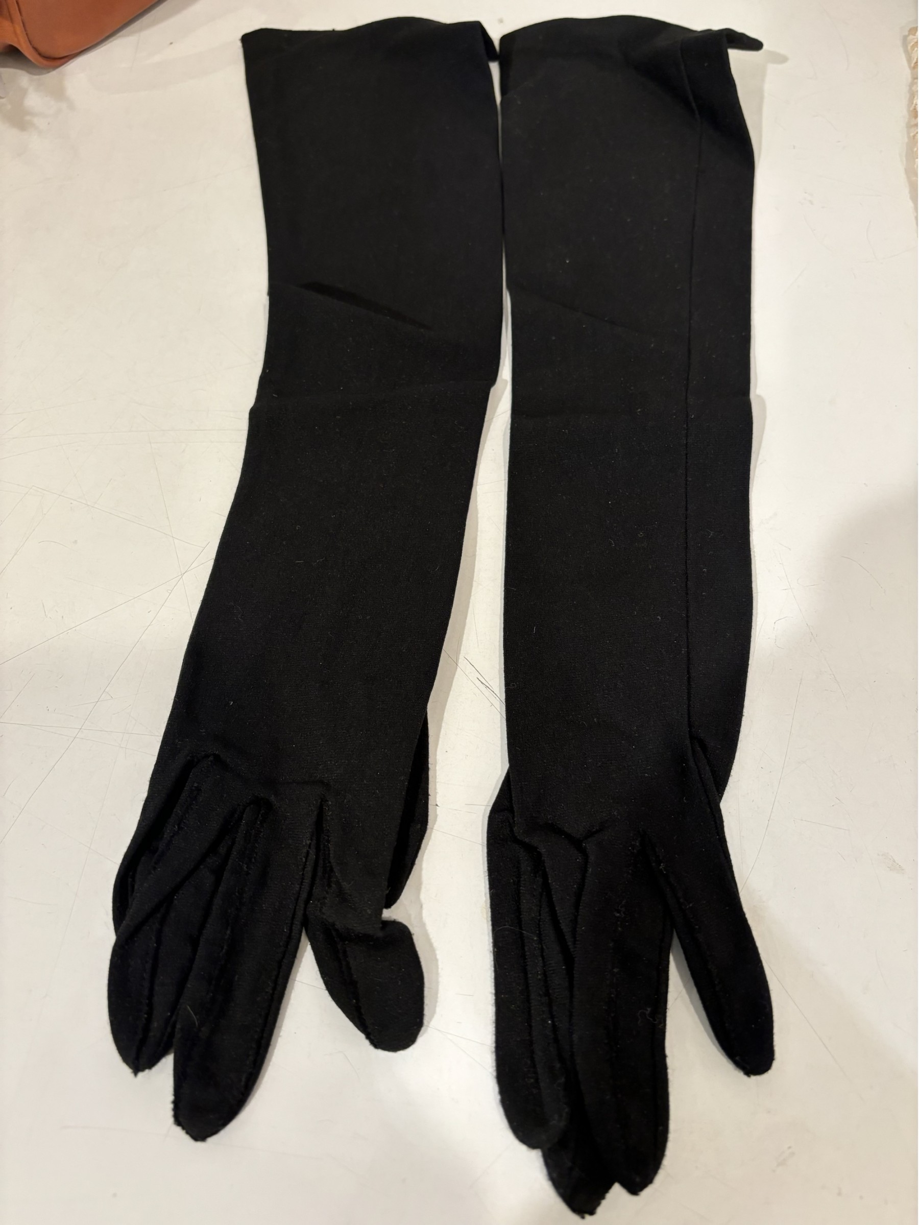 Vintage Long Cocktail/Opera gloves, size small in black Cotton