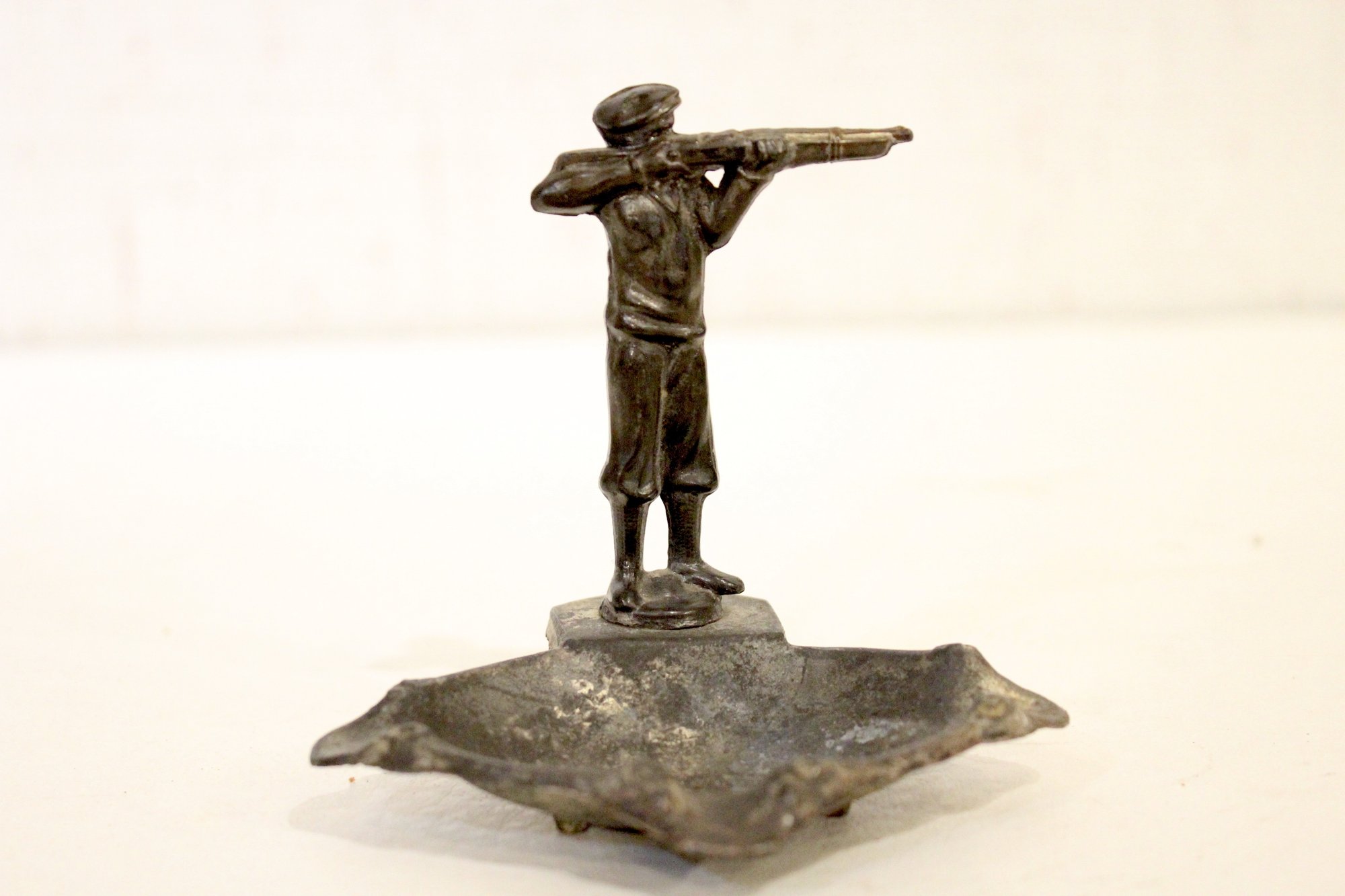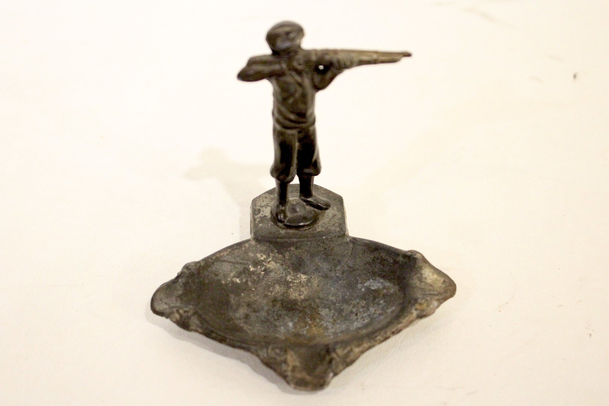 a vintage hunter with a rifle ashtray, "Vienna Bronze" style or "Armor Bronze" style, 4"