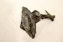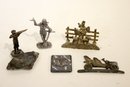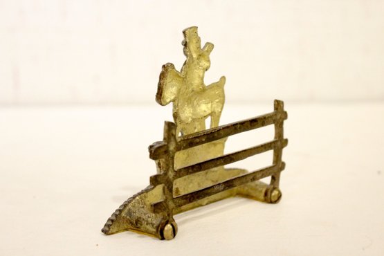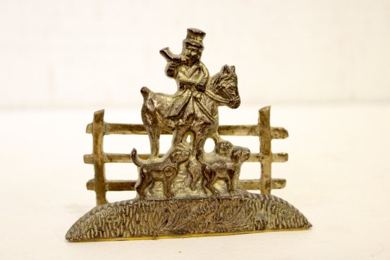 a vintage brass letter or napkin holder featuring the famous huntsman John Peel and his dogs, 4"