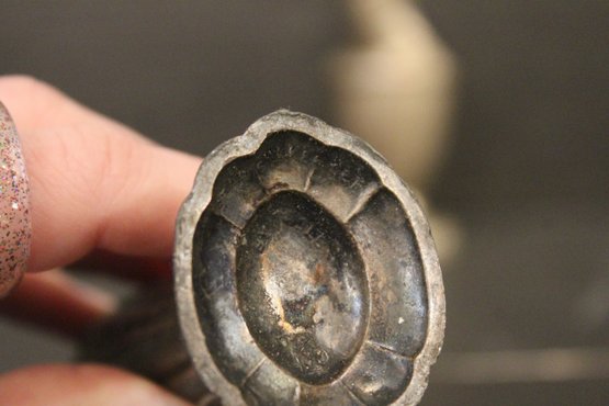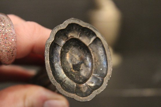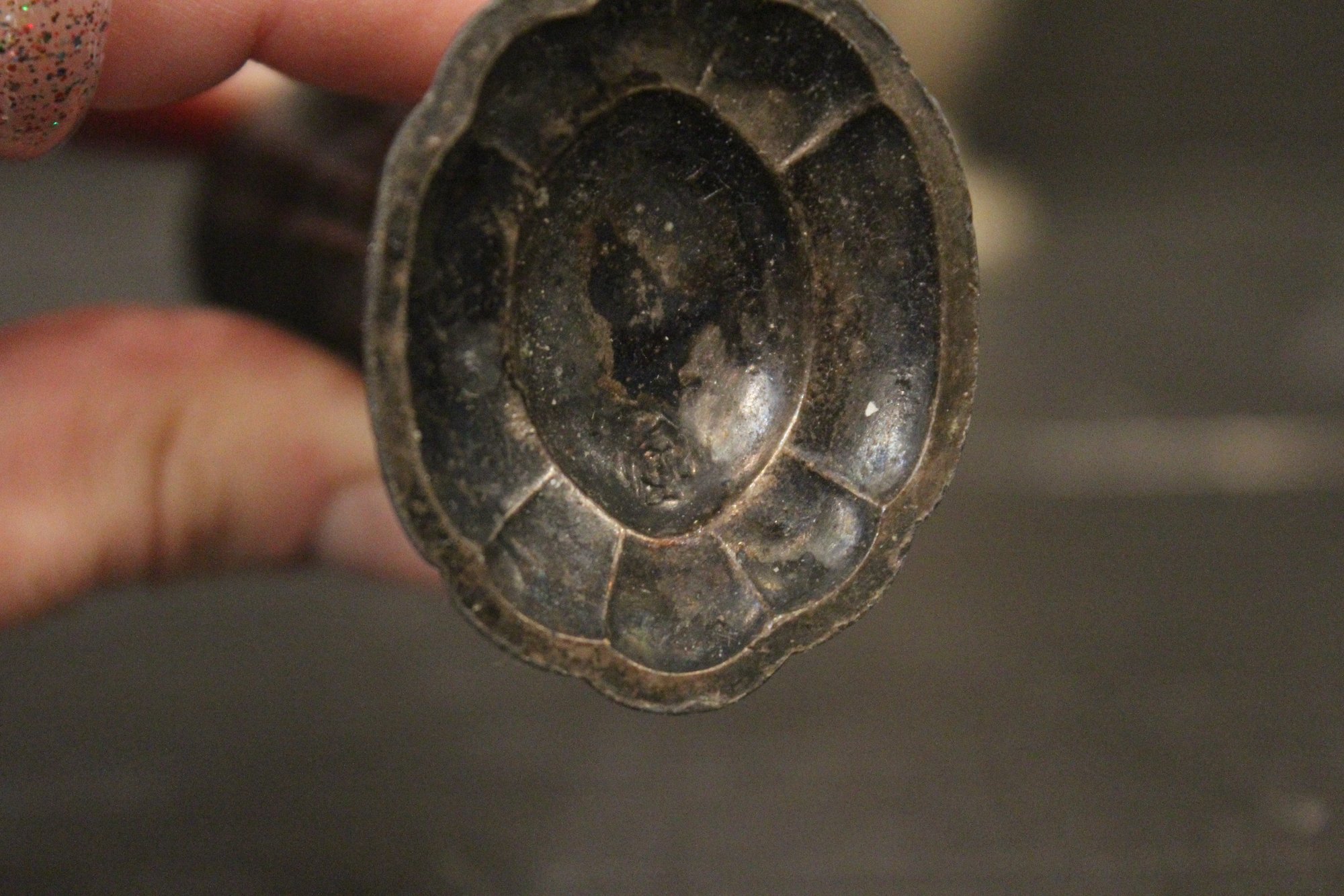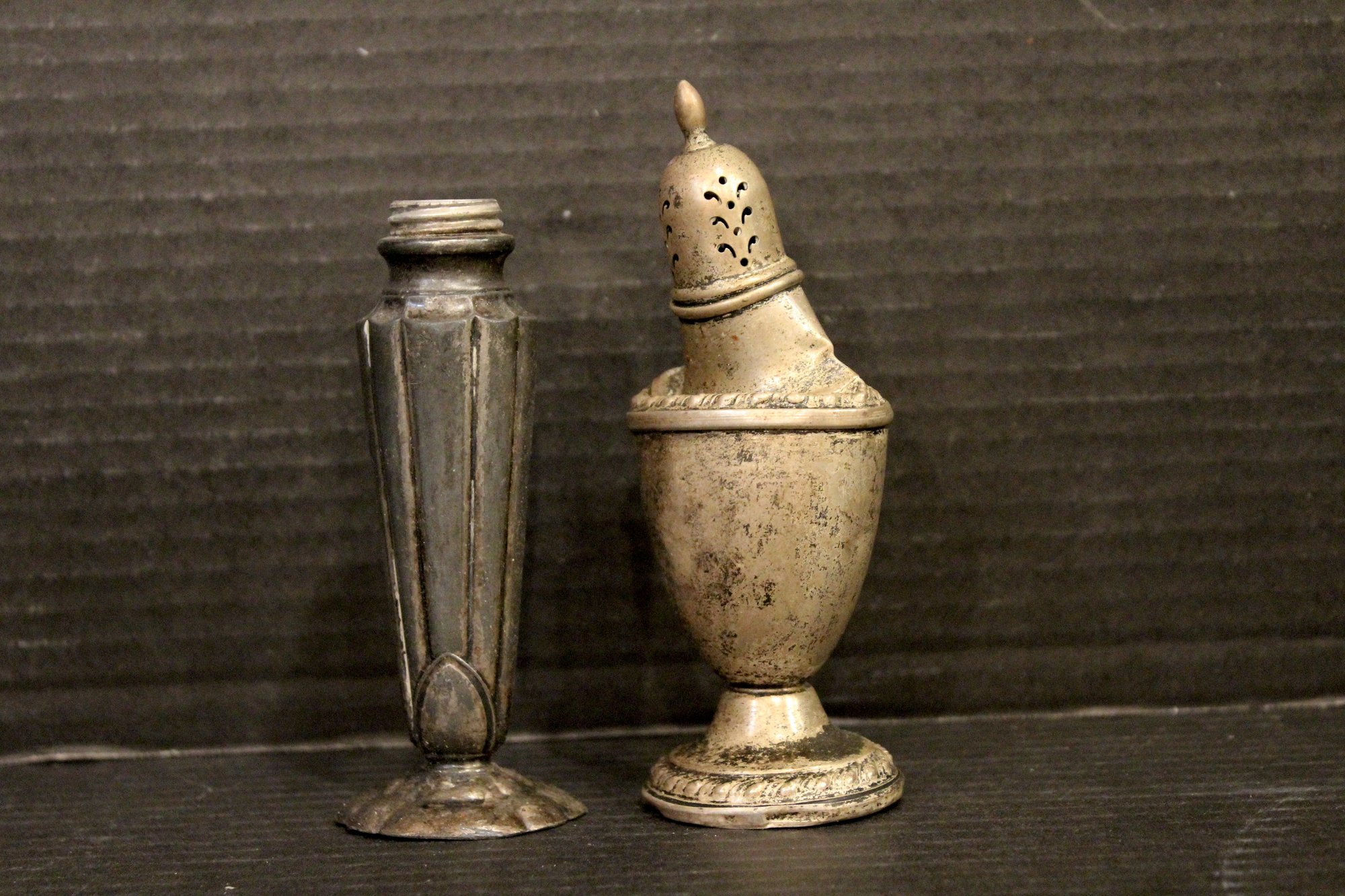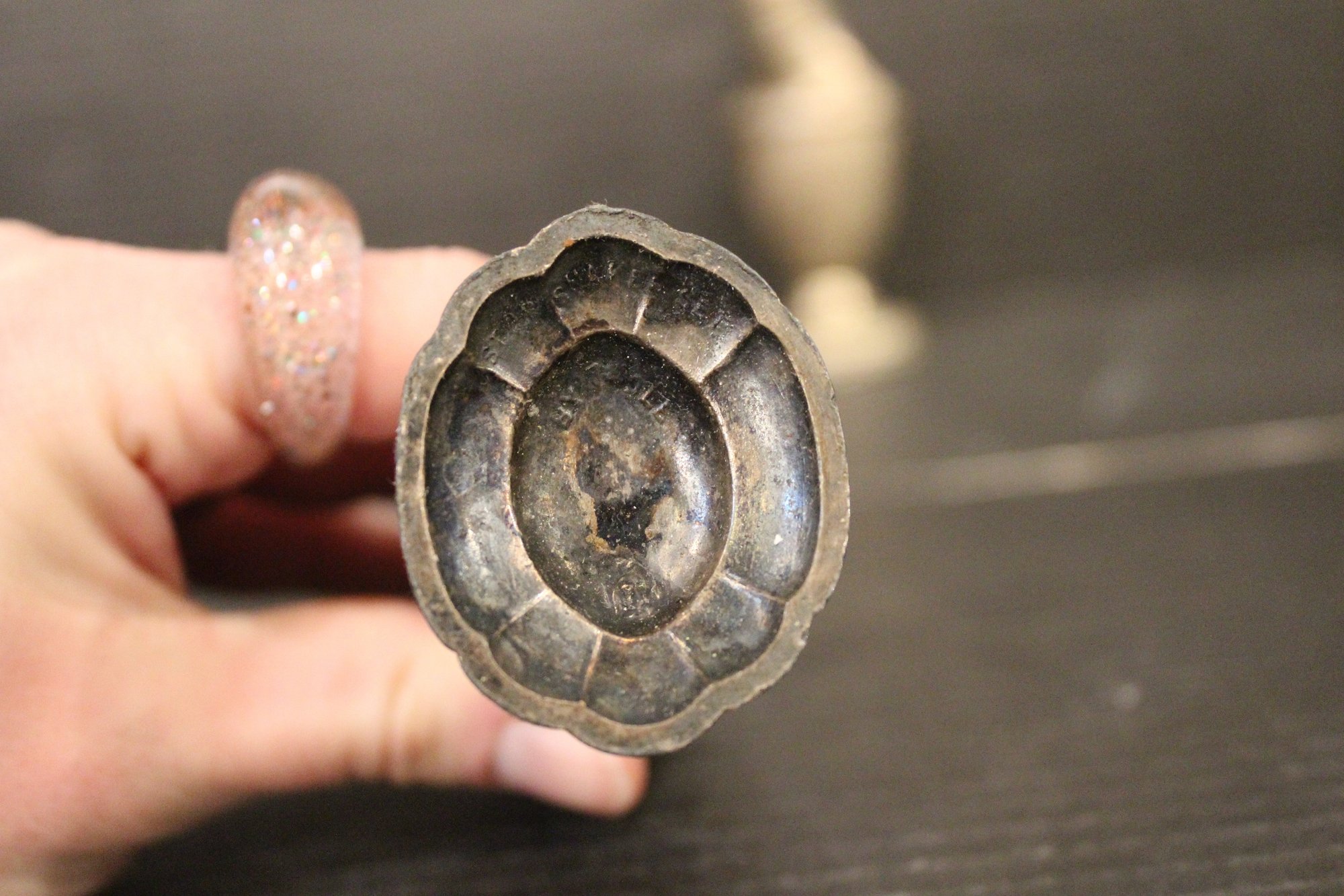 a set of 4 vintage Mexican 925 sterling silver overlay shot glasses 2", (the glass is missing in one cup) the small cups match the pitcher (lot number 351, Haig & Haig Pinch Dimple Whisky Bottle, Sterling Silver Overlay).