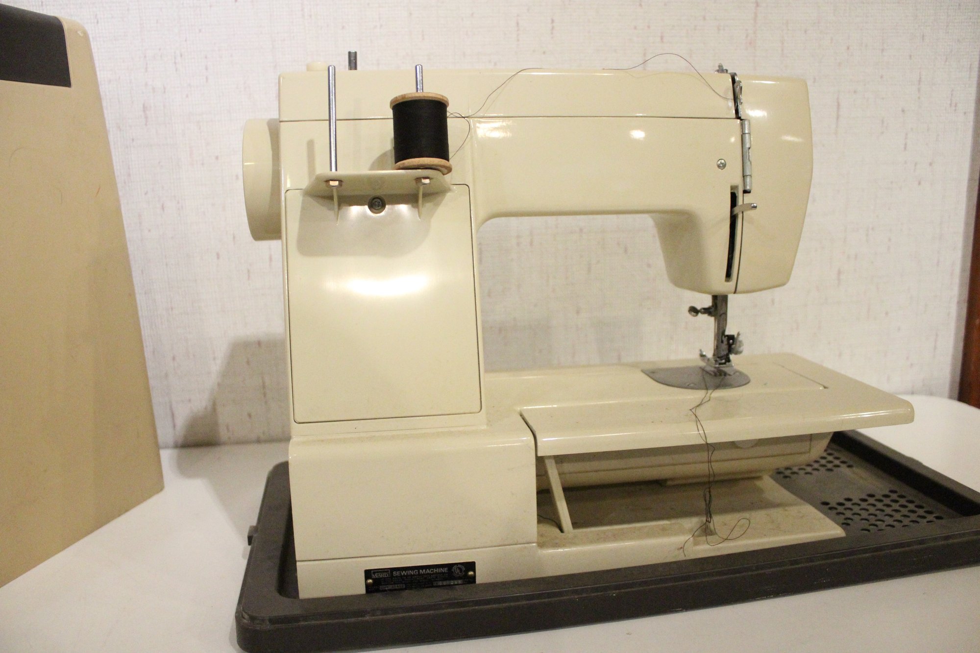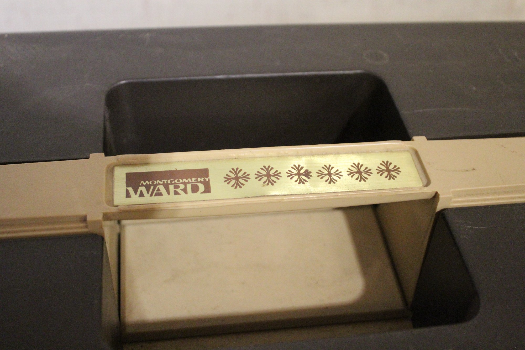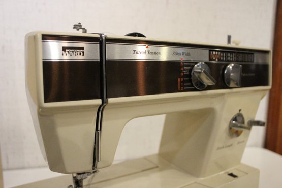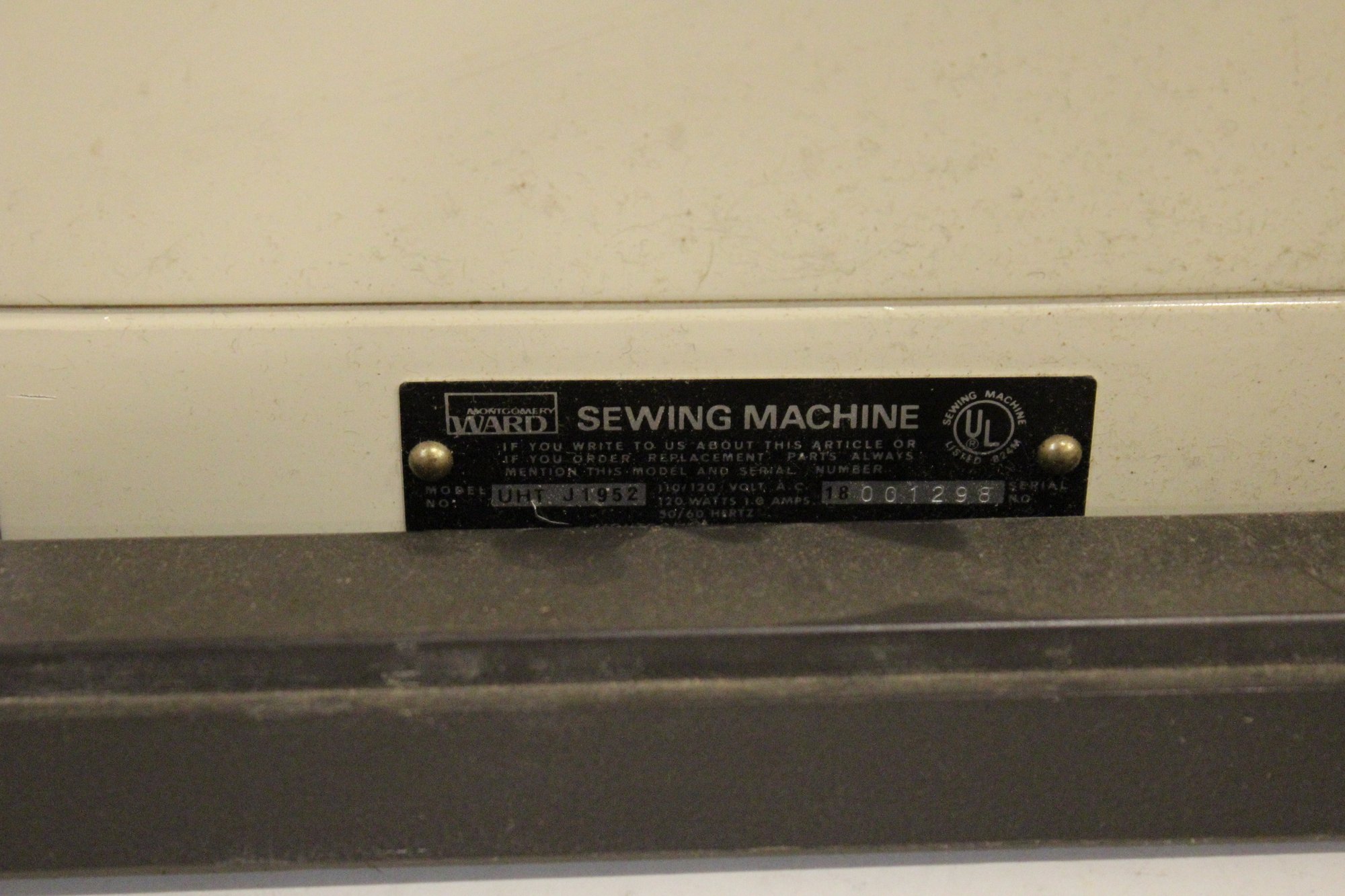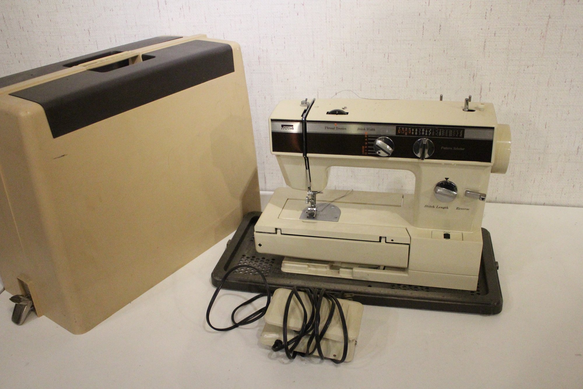 A vintage Montgomery Ward UHT J1952 sewing machine, in a carrying case, 20" x 16" x 10". This item can not be shipped.