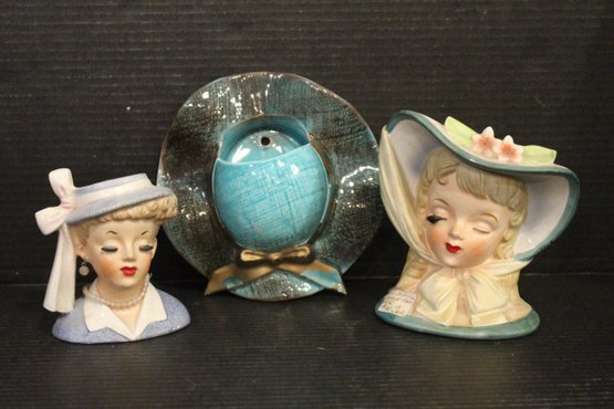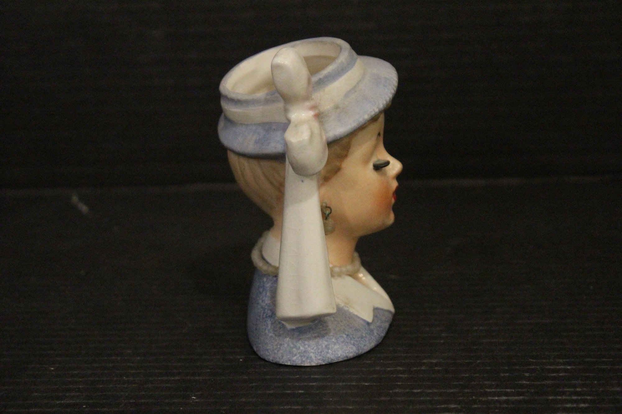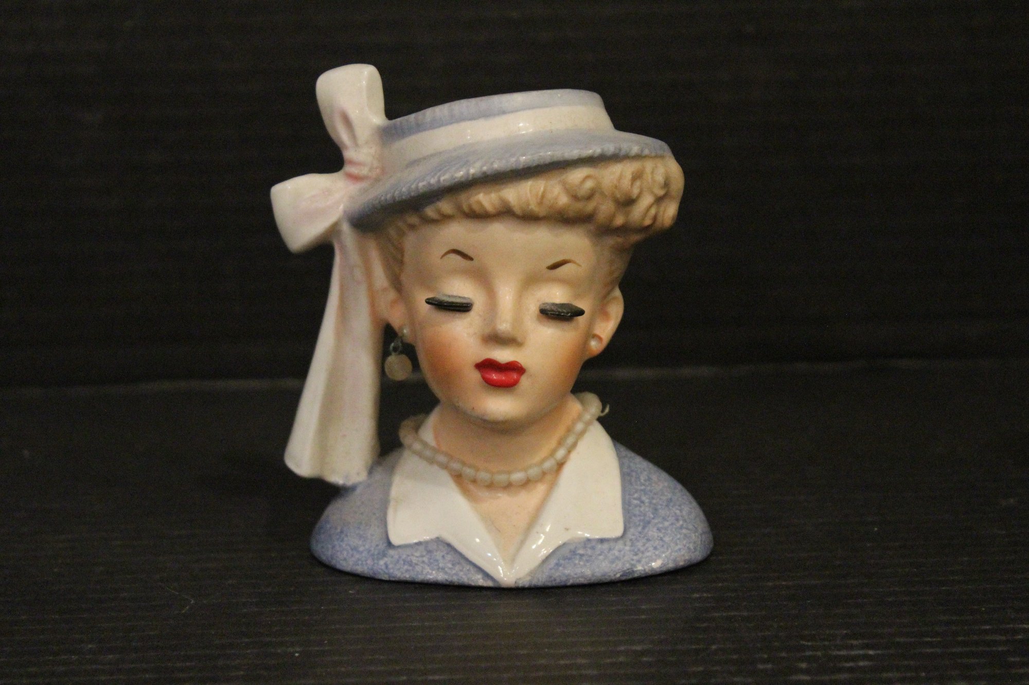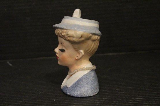 Vintage 1958 NAPCO Lady Head Vase Blonde Blue & Pink 5"