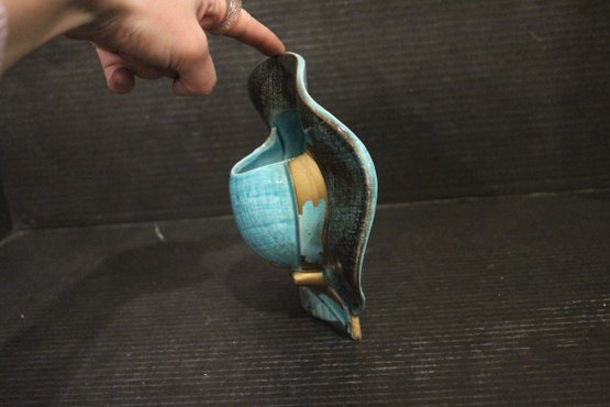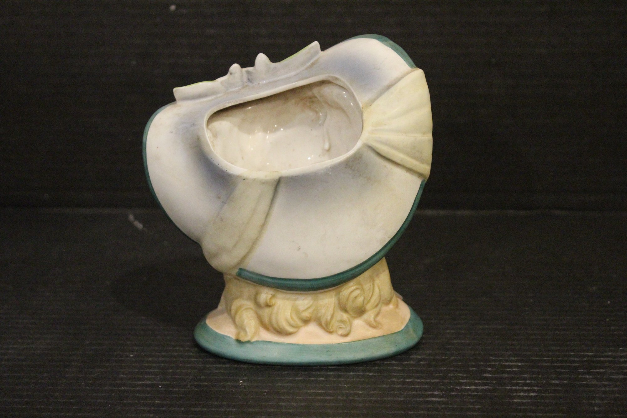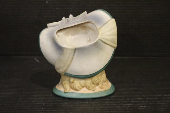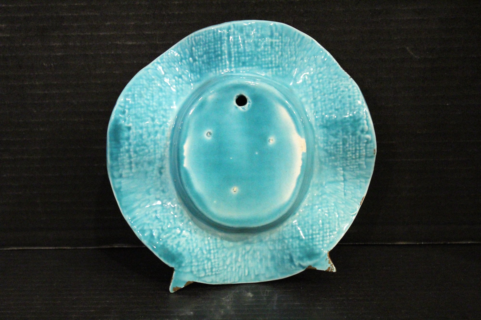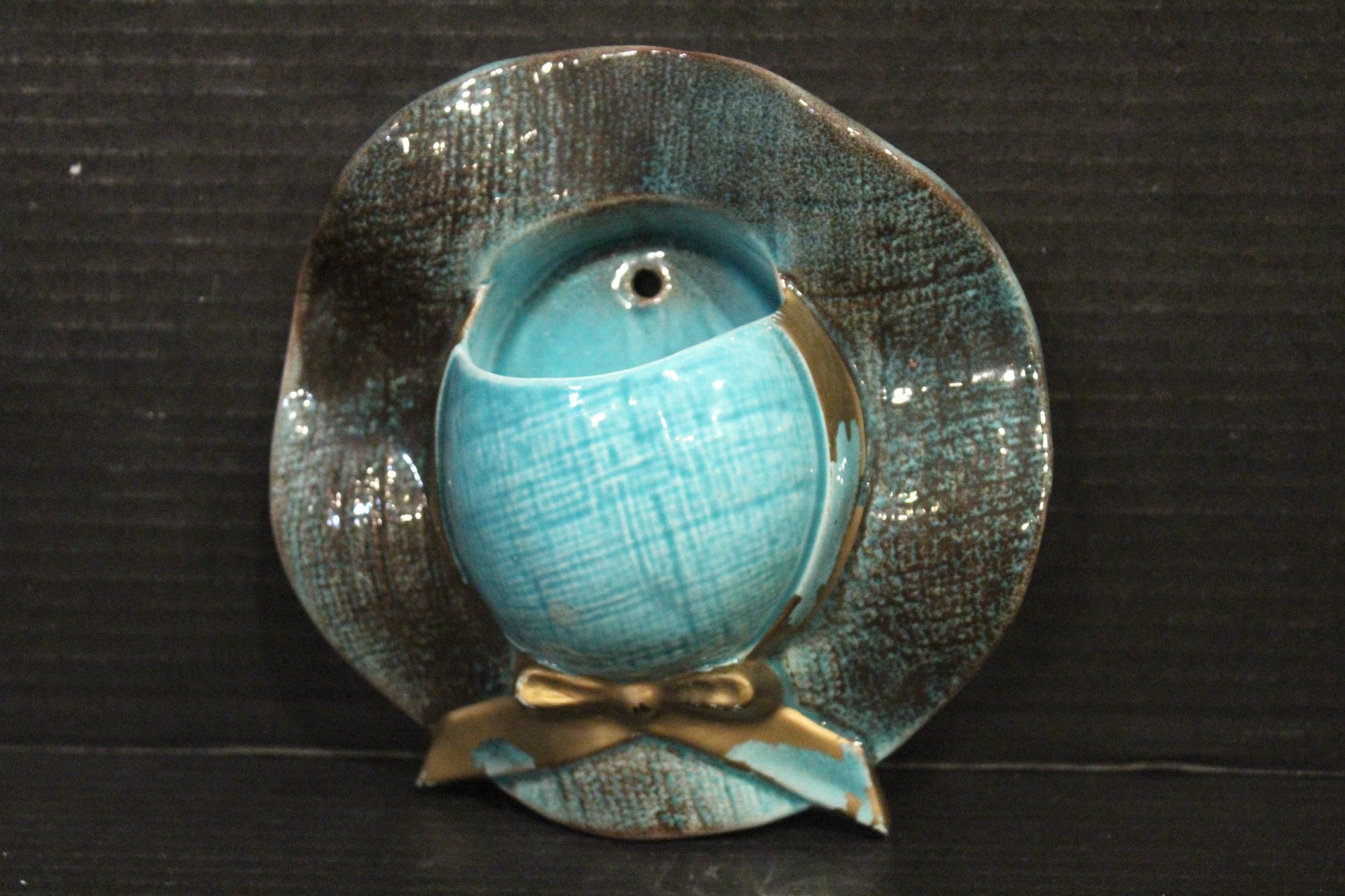 Vintage 1950s Wall Hat Planter - Turquoise Blue with Gold Bow - Mid-Century Modern Décor, 7"