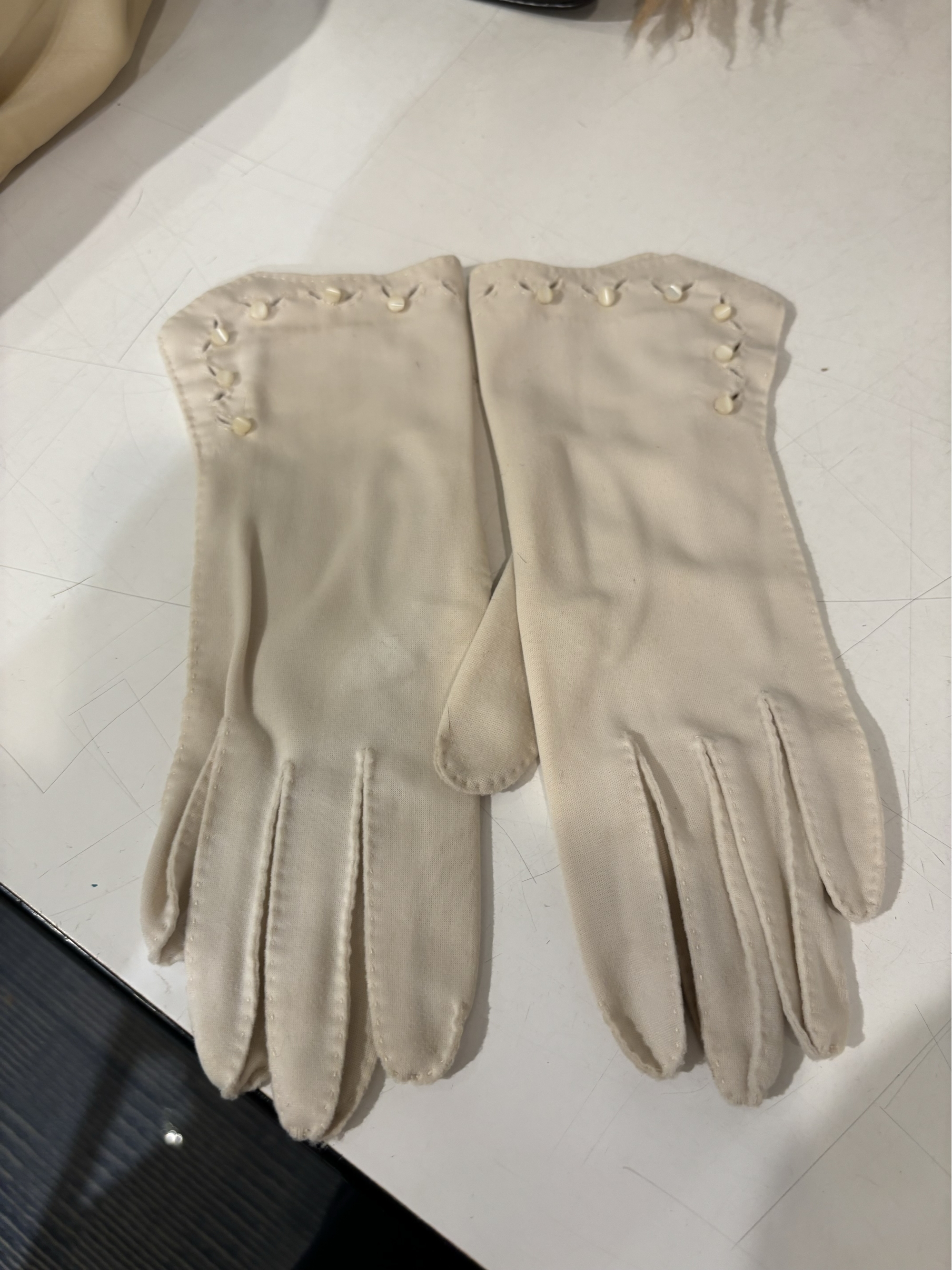 Off White Tea Gloves with Beaded cuffs. Vintage size small.