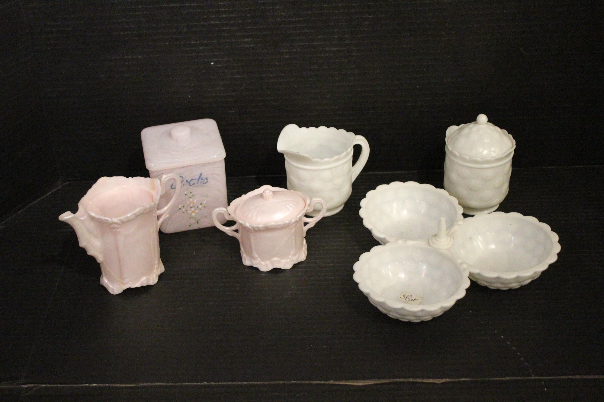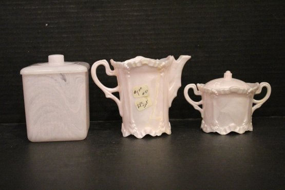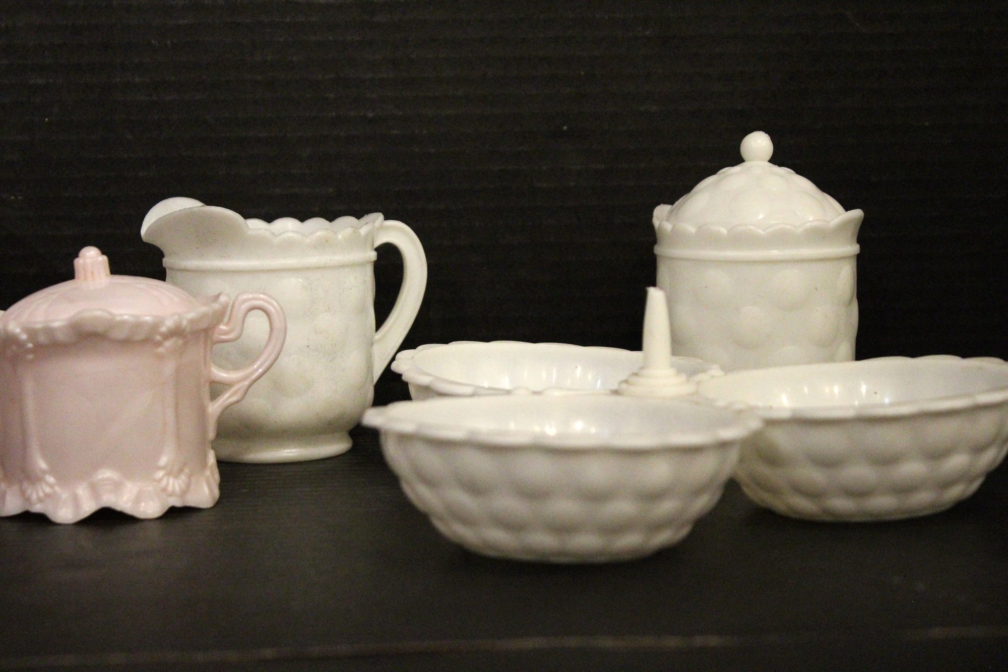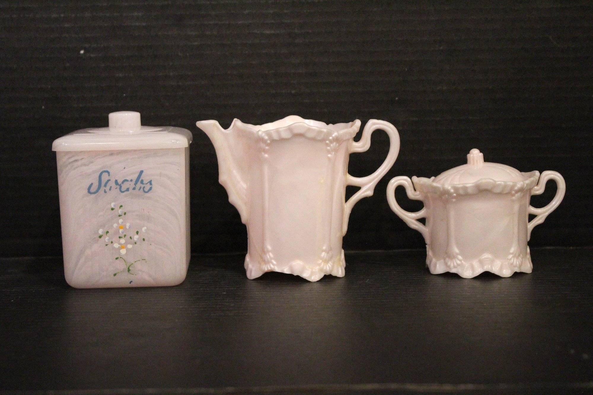 Vintage plastic tea set items sizing at 2" and 4" with the serving tray at 8" x 1"