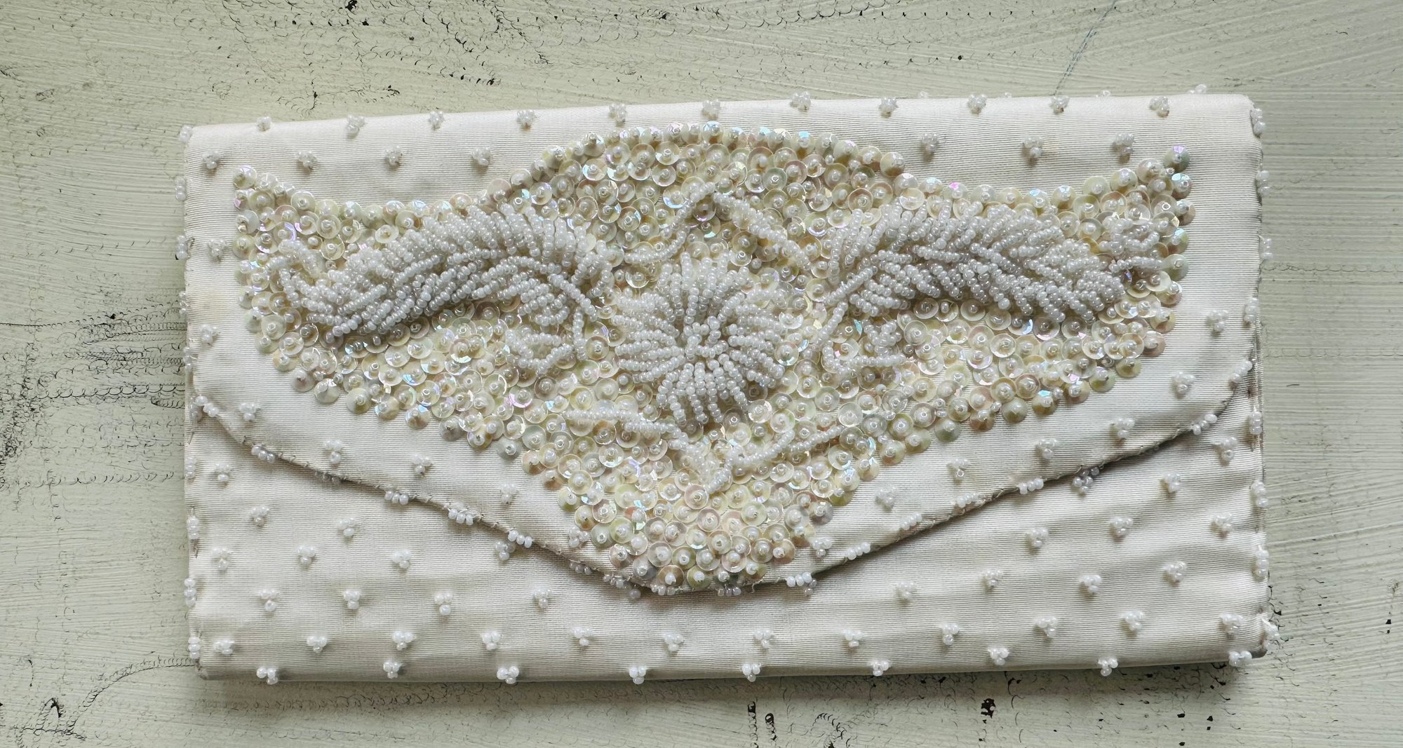 Vintage Cream, Richere, Beaded Evening Clutch by Walborg.