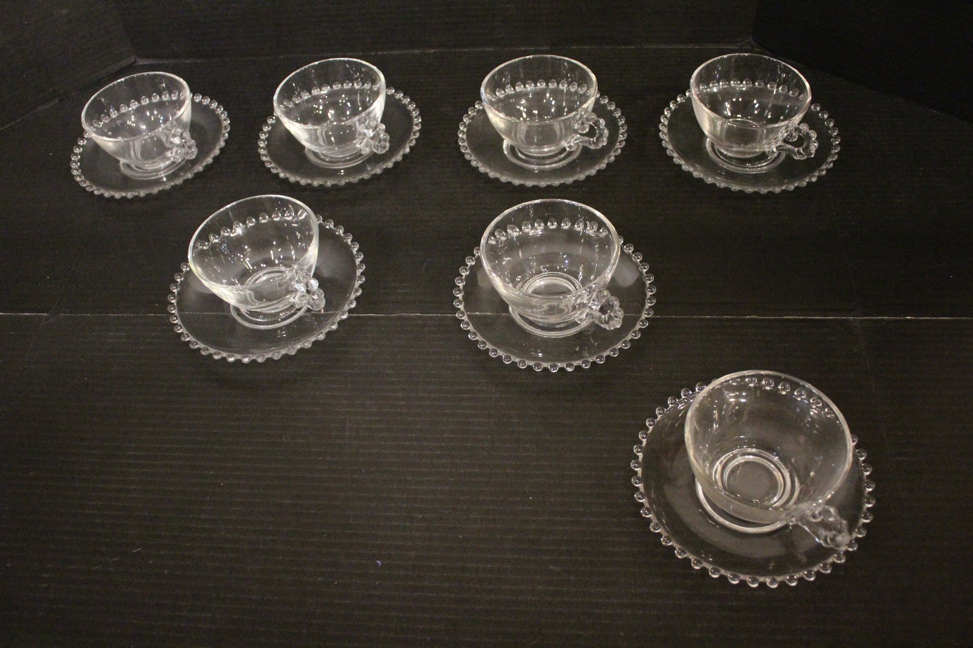 A second Vintage set of 7 Imperial Glass Candlewick Tea/coffee Cups with Saucers. These items can be shipped.