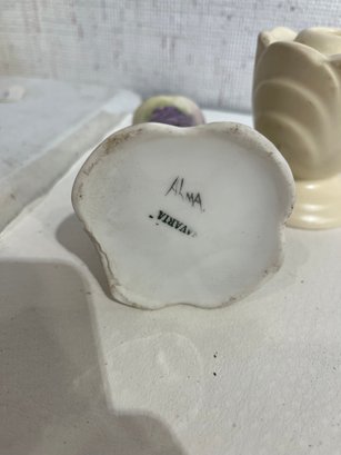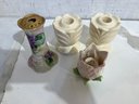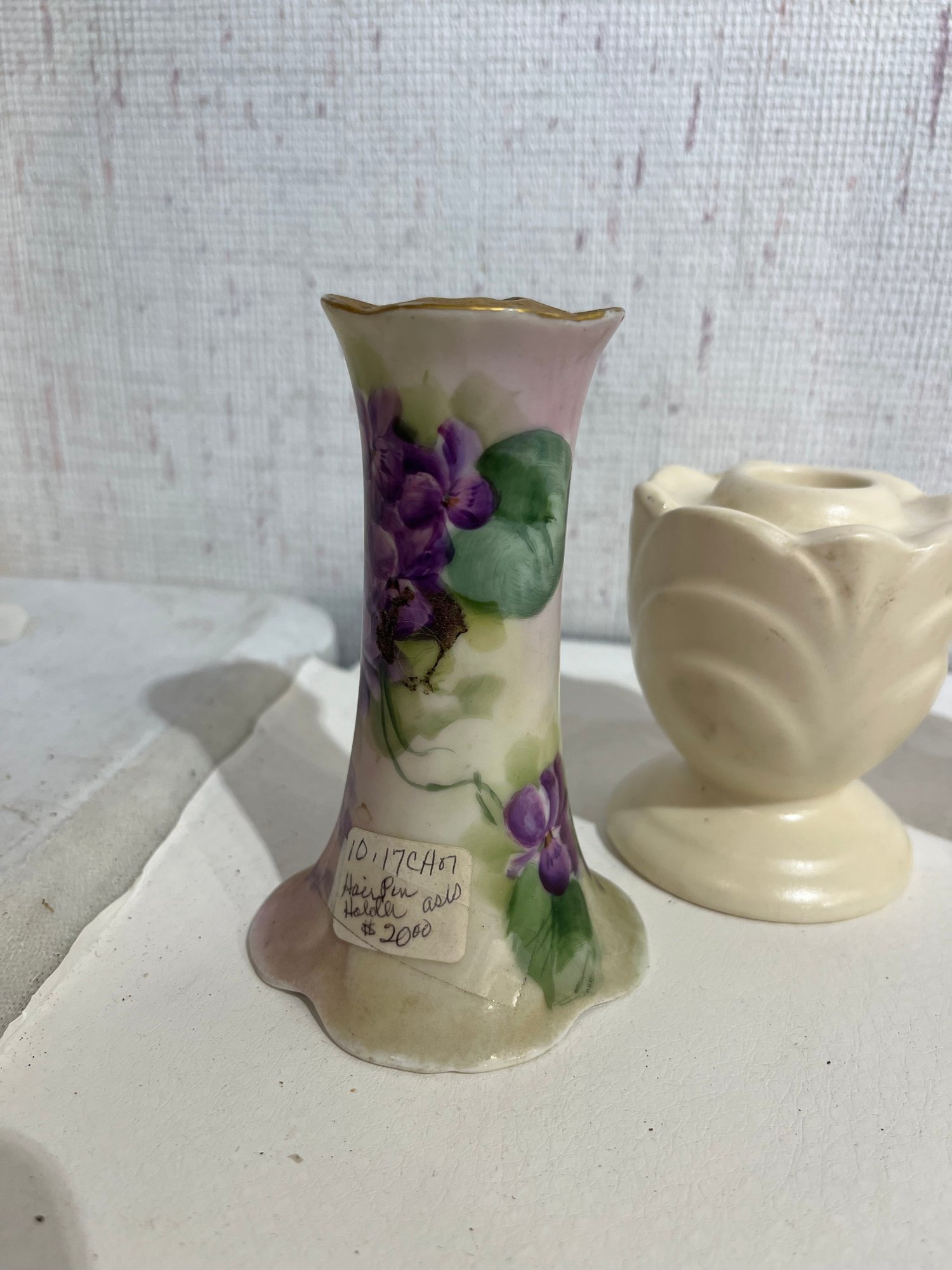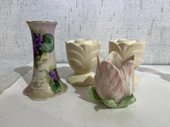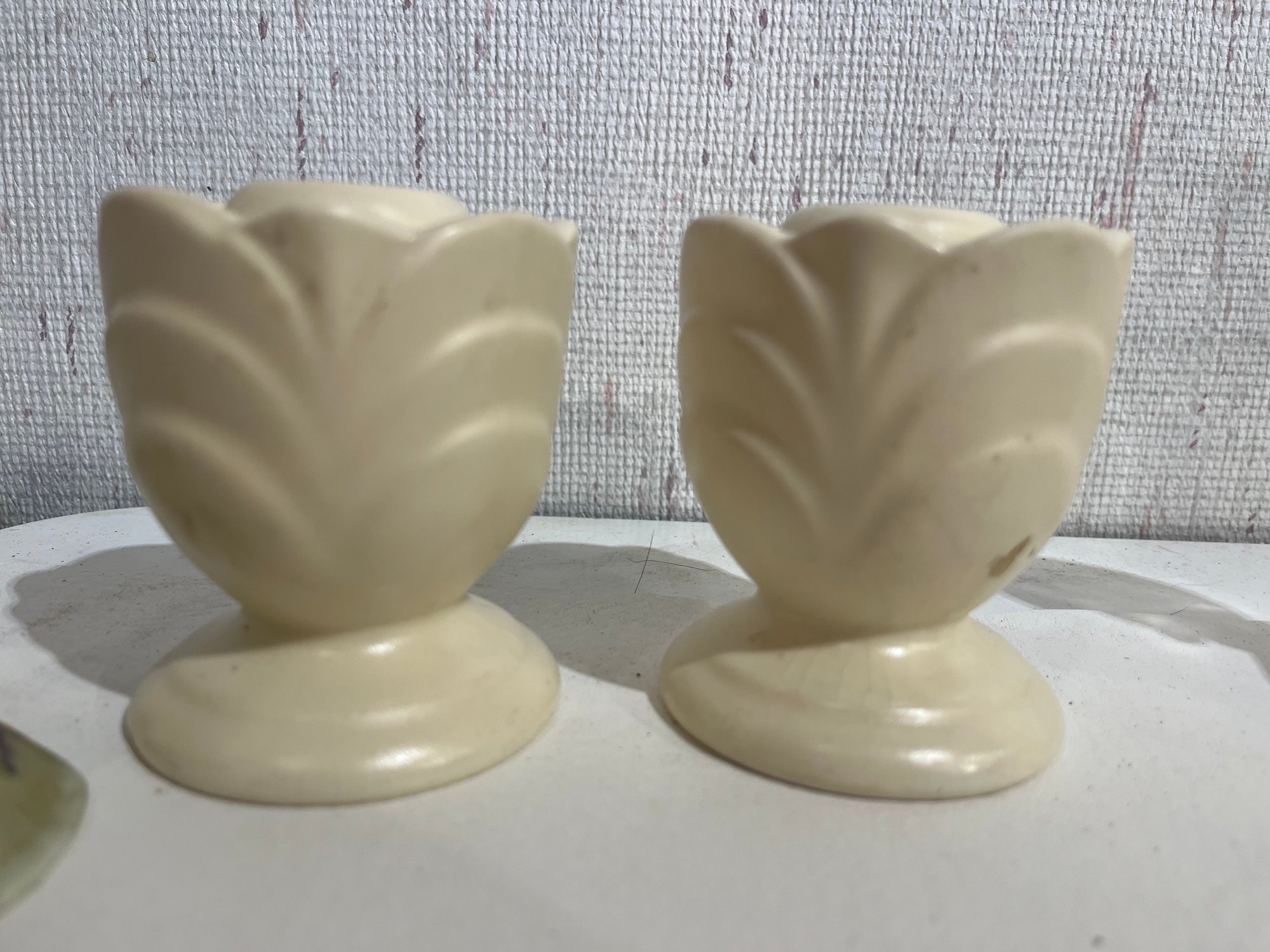 vintage Shawnee Pottery scallop tulip tapered candle holders, 3"