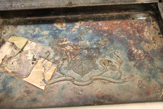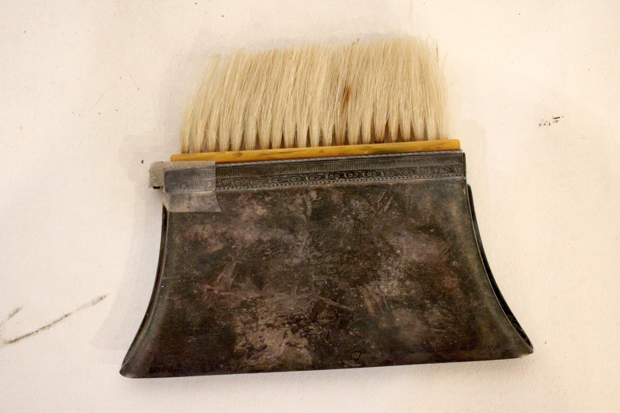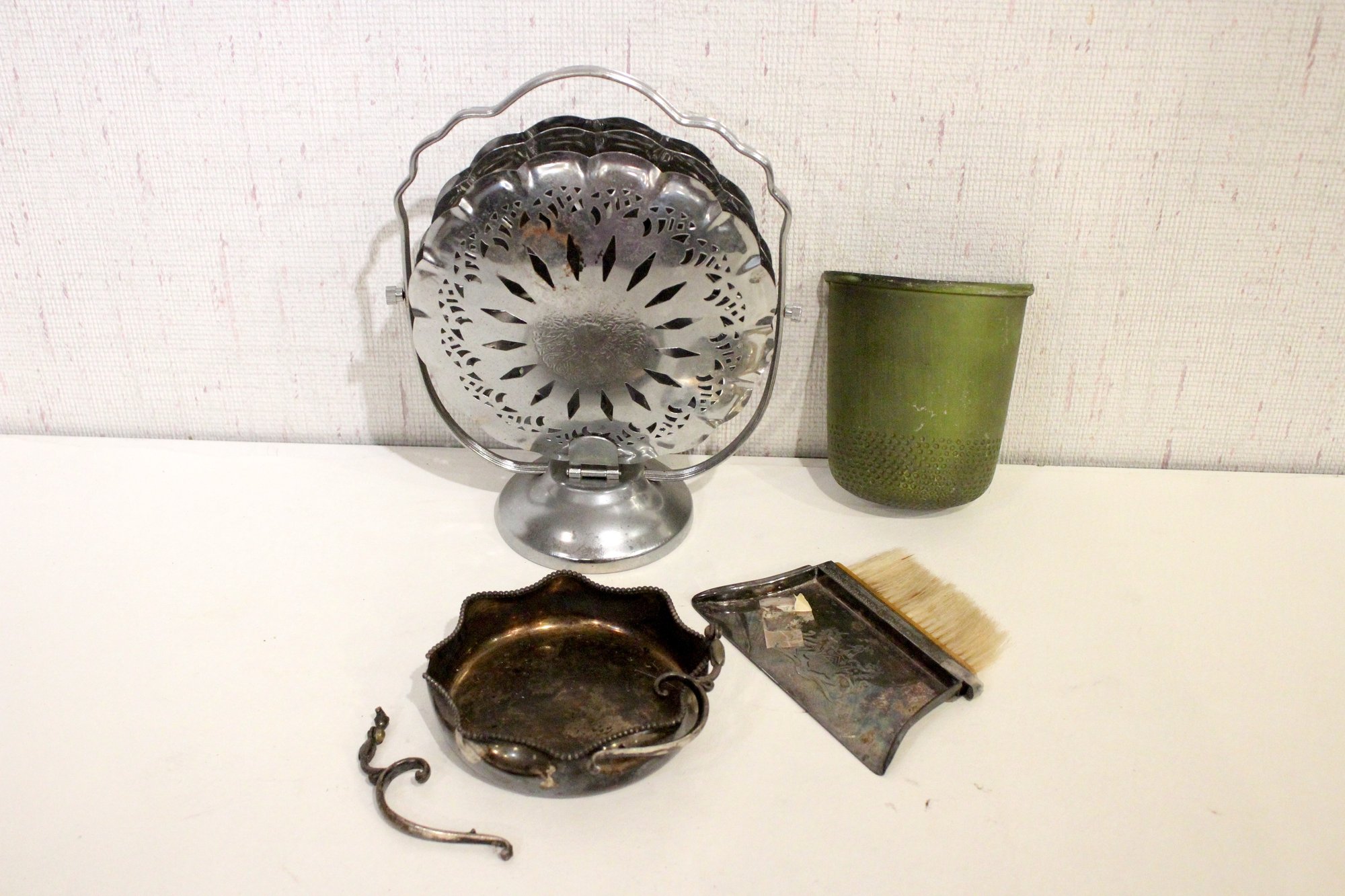 vintage silver-plated silent butler or crumb catcher set 5" x 6"