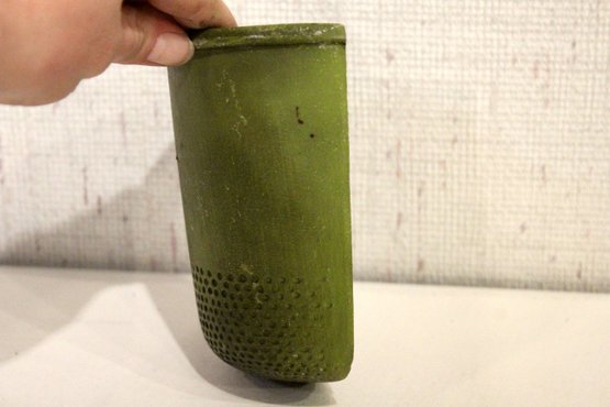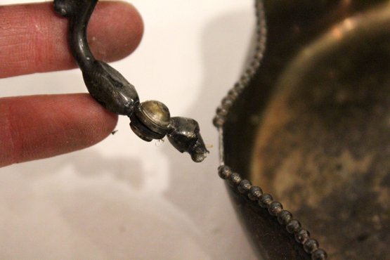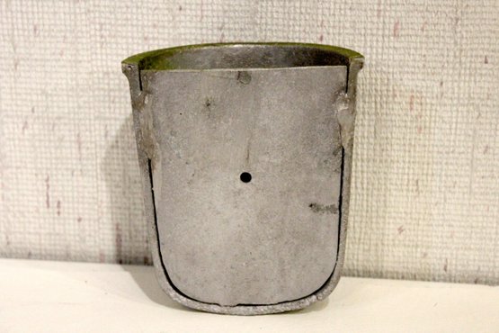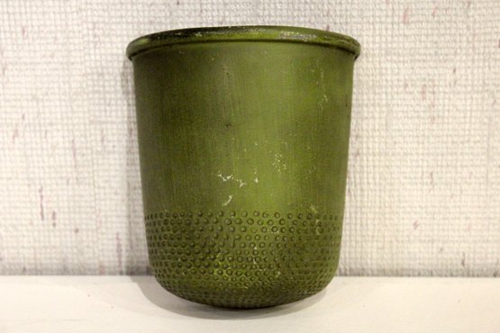 a vintage metal sewing thimble wall pocket, 5" x 5" x 2"