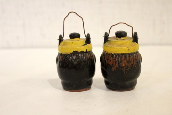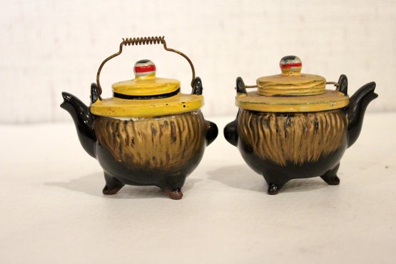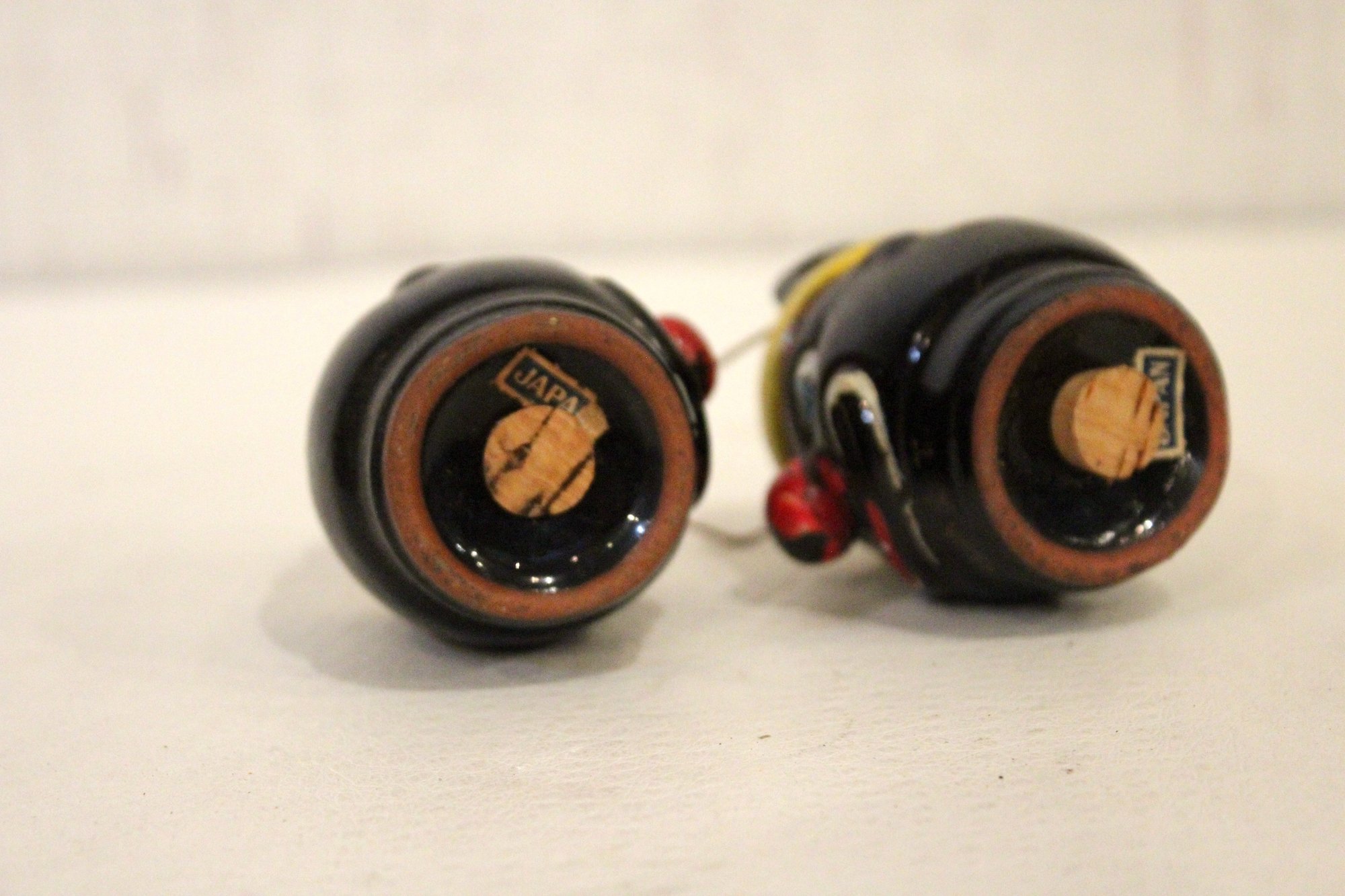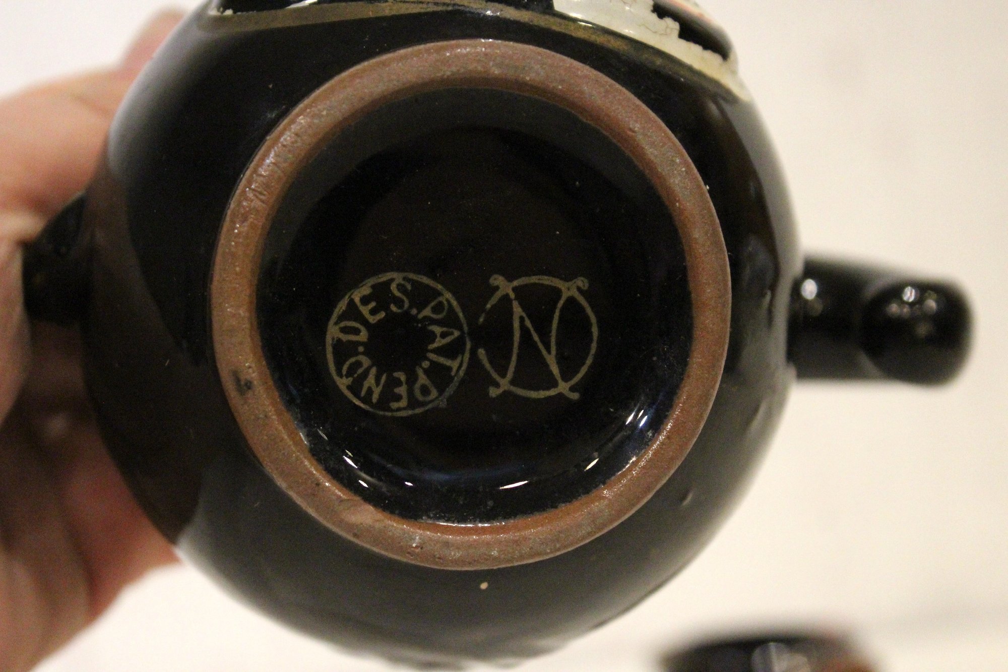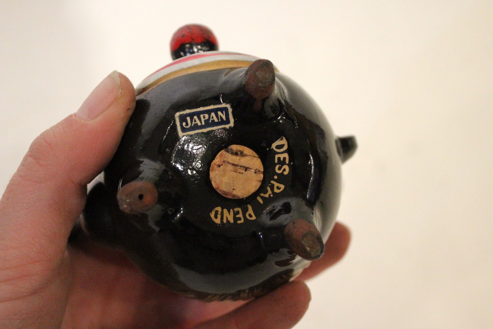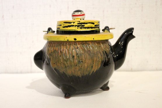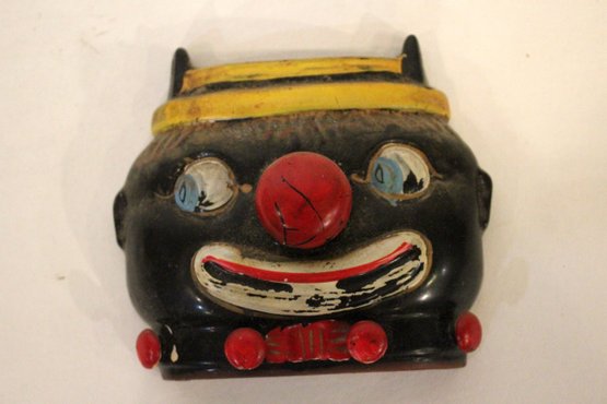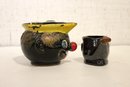 A vintage Black Americana, Thames redware clown face teapot set of 8, made in Japan in the 1950s. The main teapot is 7" tall. These items can be shipped.