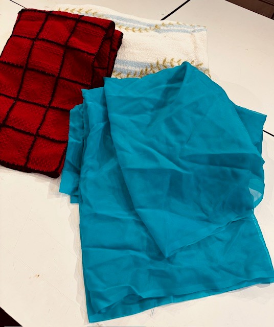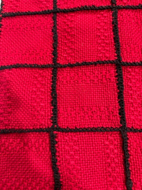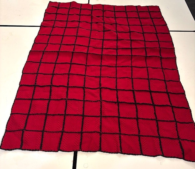 Red and Black hand stitched crochet throw 46" x 38" like new