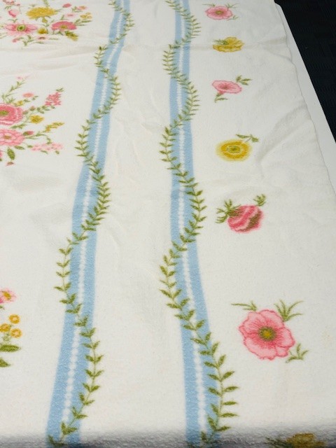 Flannel like floral blanket 60"x82" in good condition the sides have some unraveling as shown in pictures
