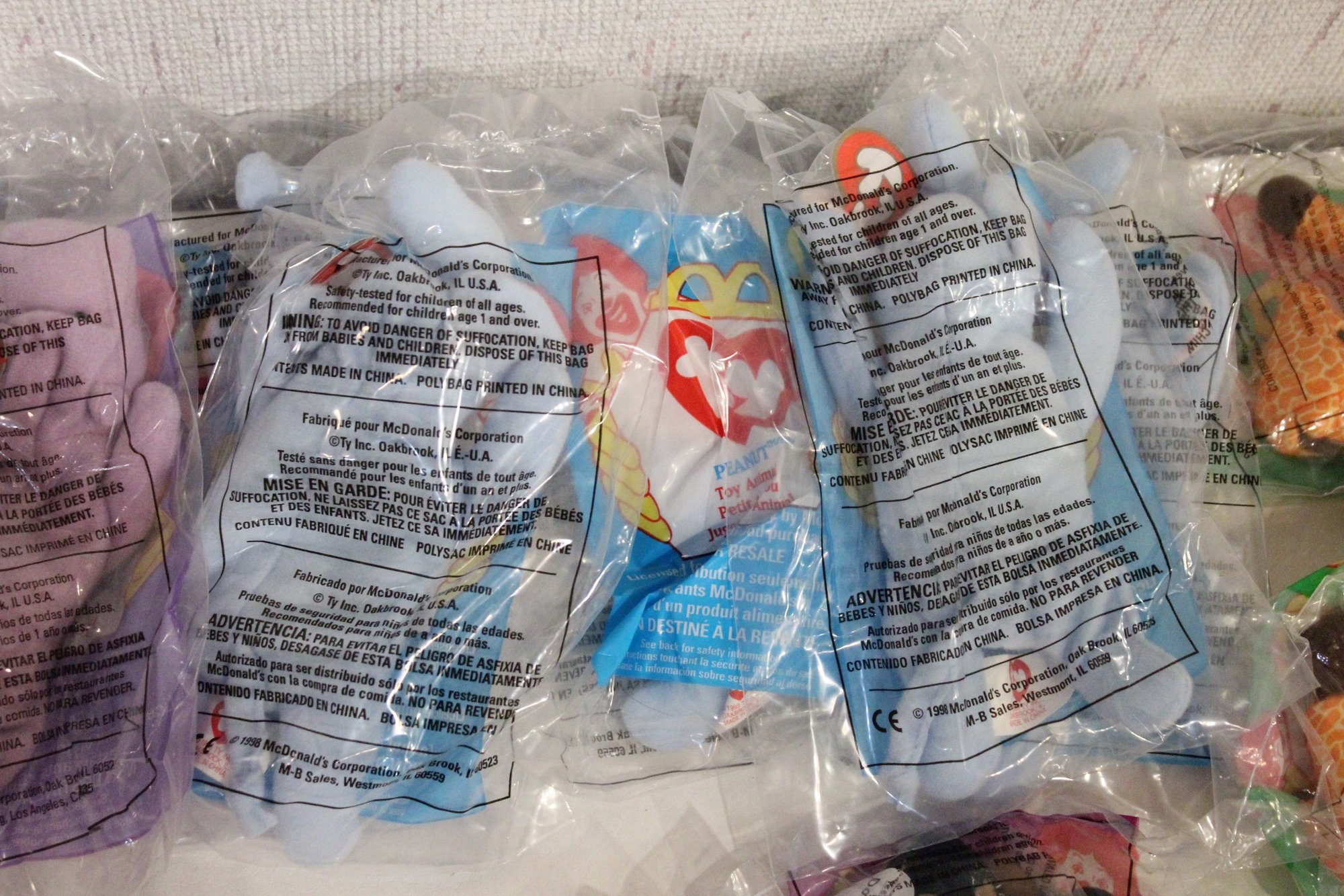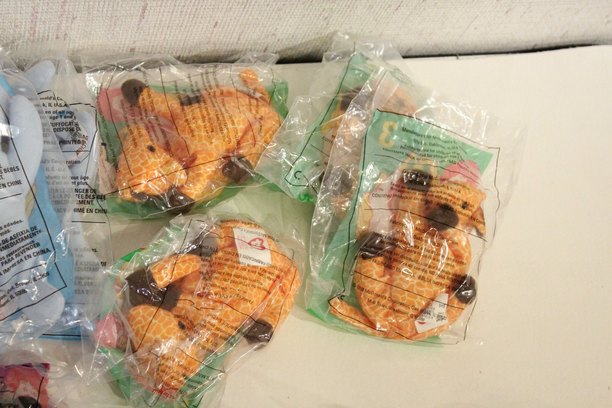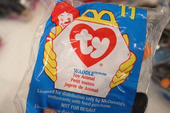 Vintage Ty McDonalds Plushy Toys, Zip, Happy, Peanut, Twigs, Mel, Bongo, Doby, Pinchers, Bones, Scoop, Inch, Waddle. These items can be shipped.
