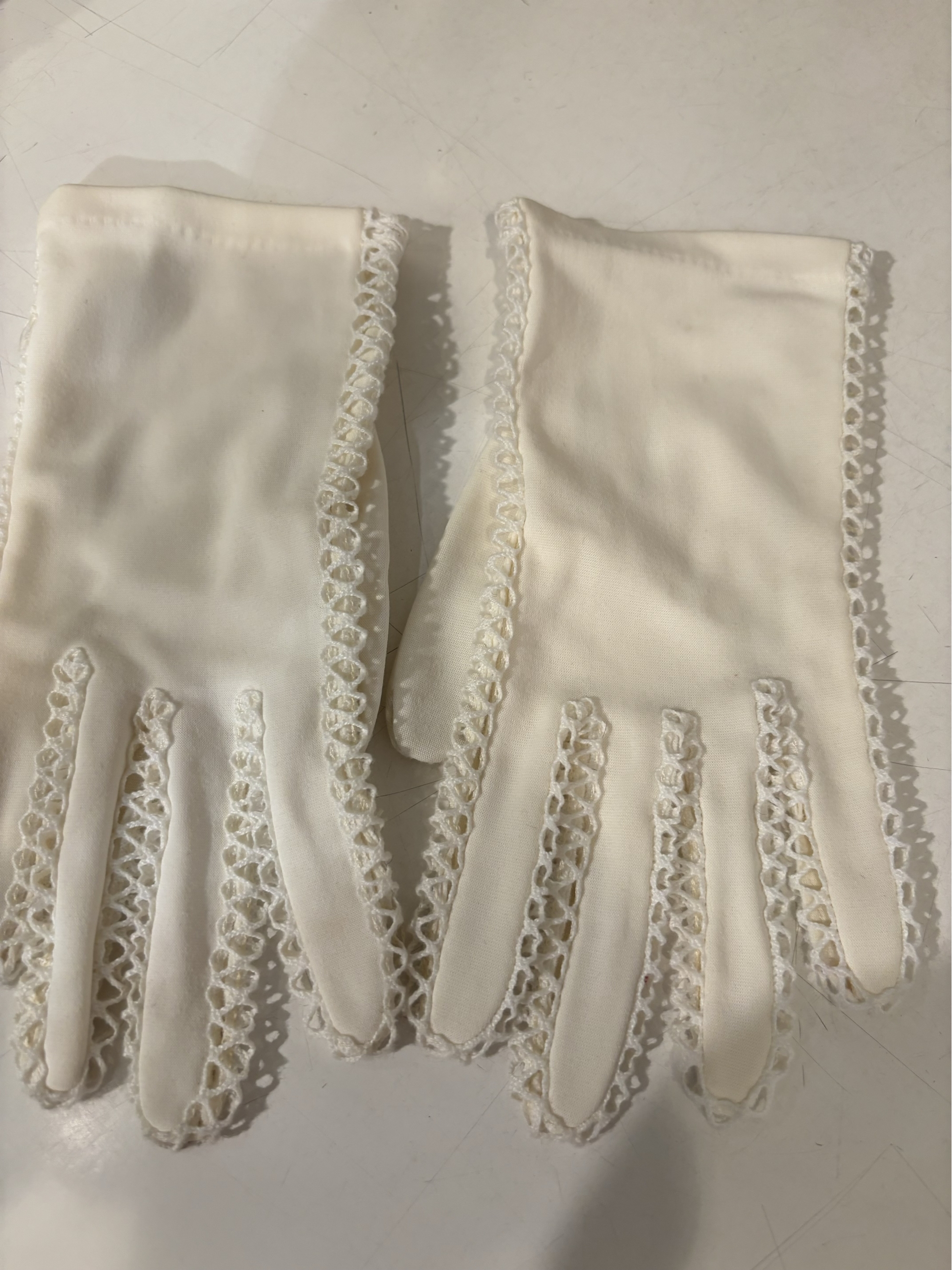 White Tea Gloves with Embroidered edging. Vintage size small.