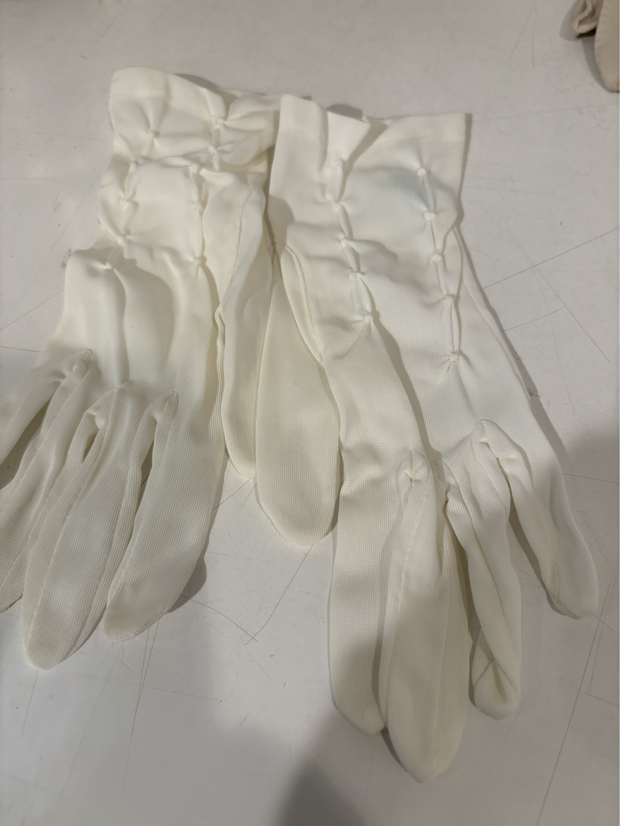 White Tea Gloves with Ruching detail on the top. Vintage size small.