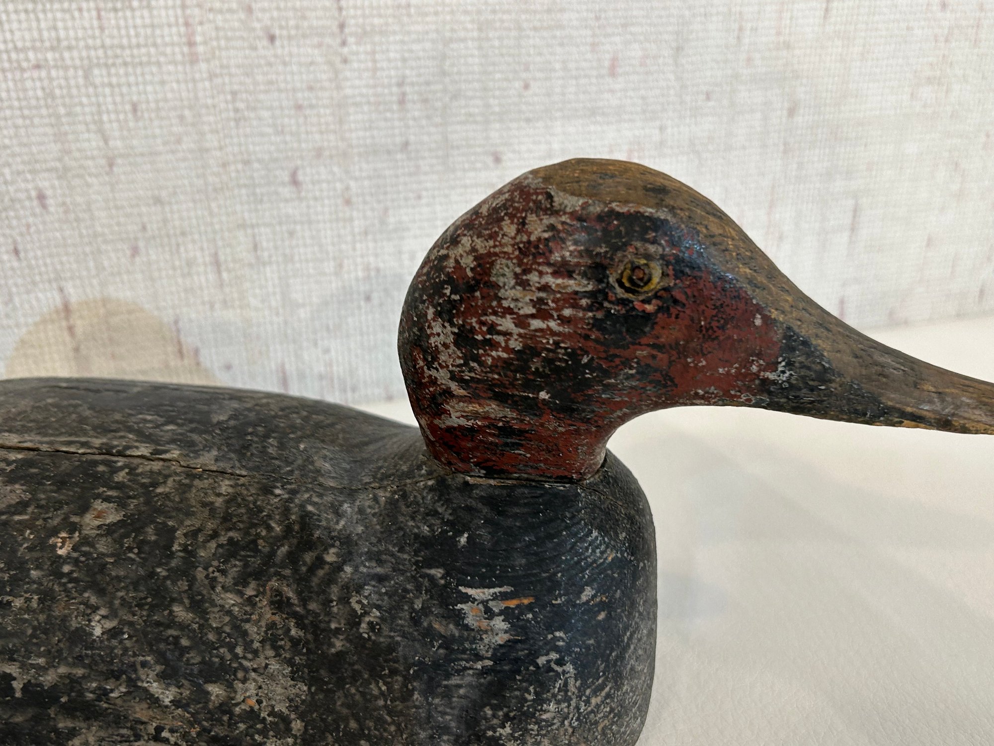 12 inches long and 6 inches tall, this vintage wooden duck has great personality.