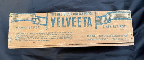 9 inch long wooden box that held 2 pounds of Velveeta cheese. No lid