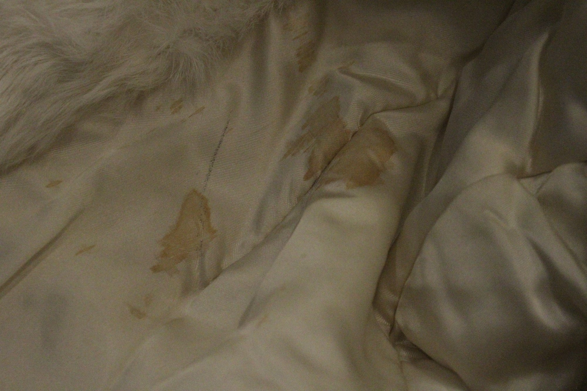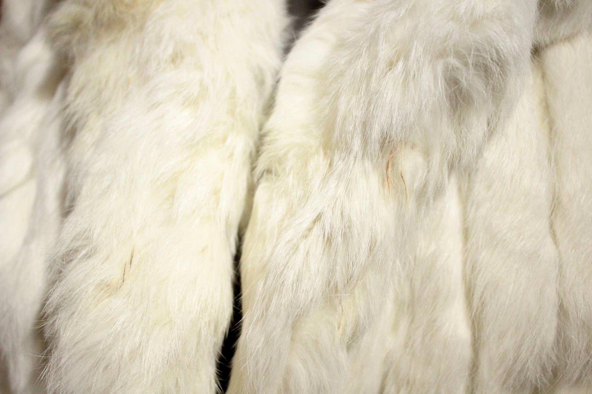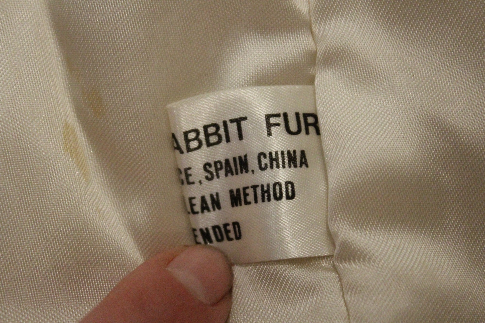 A vintage rabbit fur coat Womens size S, some staining on lining and front fur as pictured. This item can be shipped.