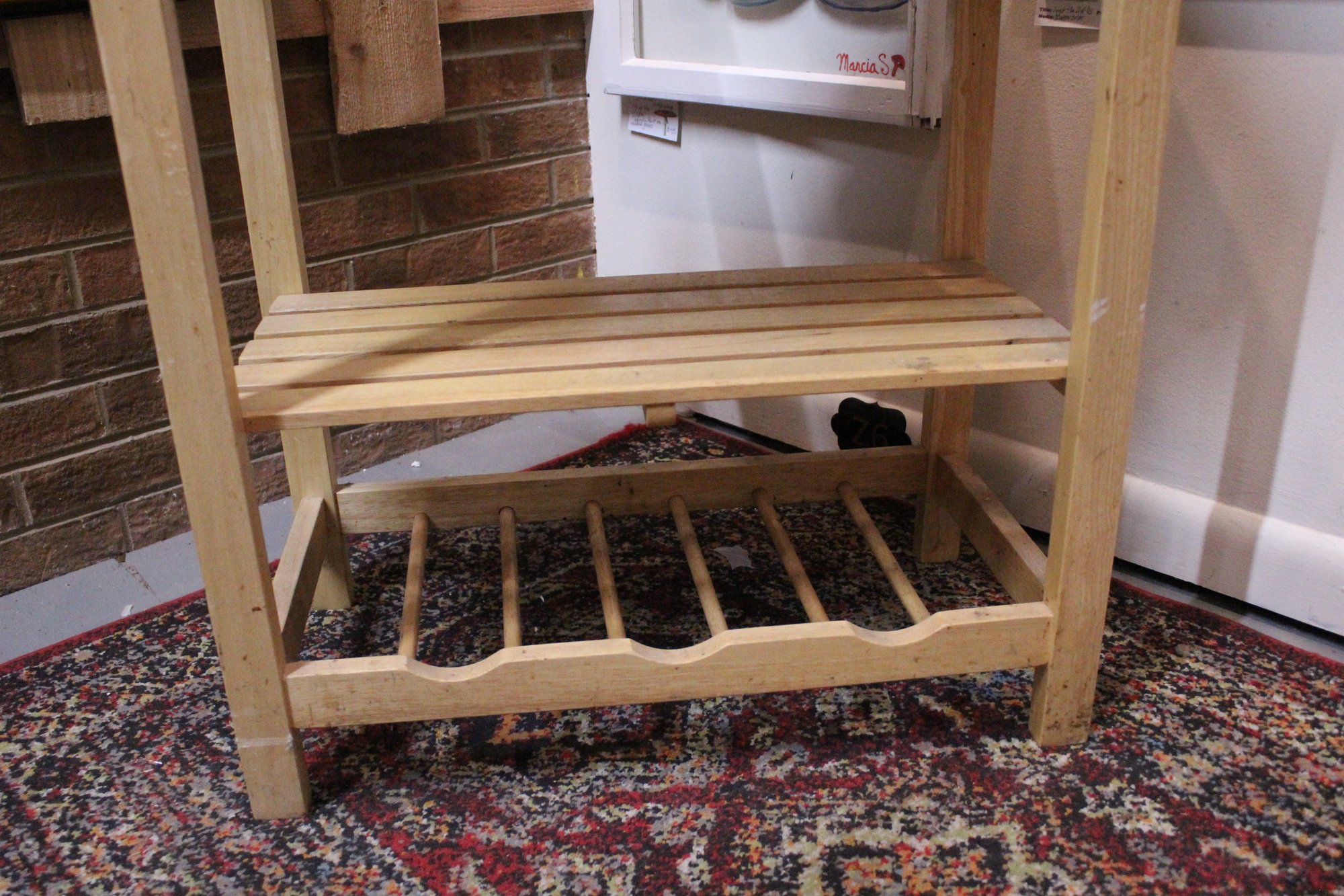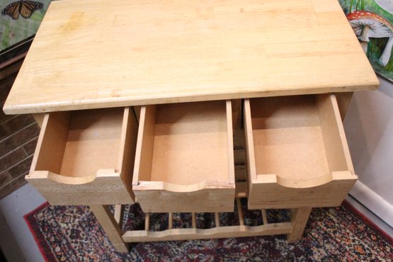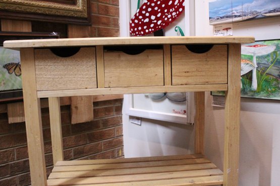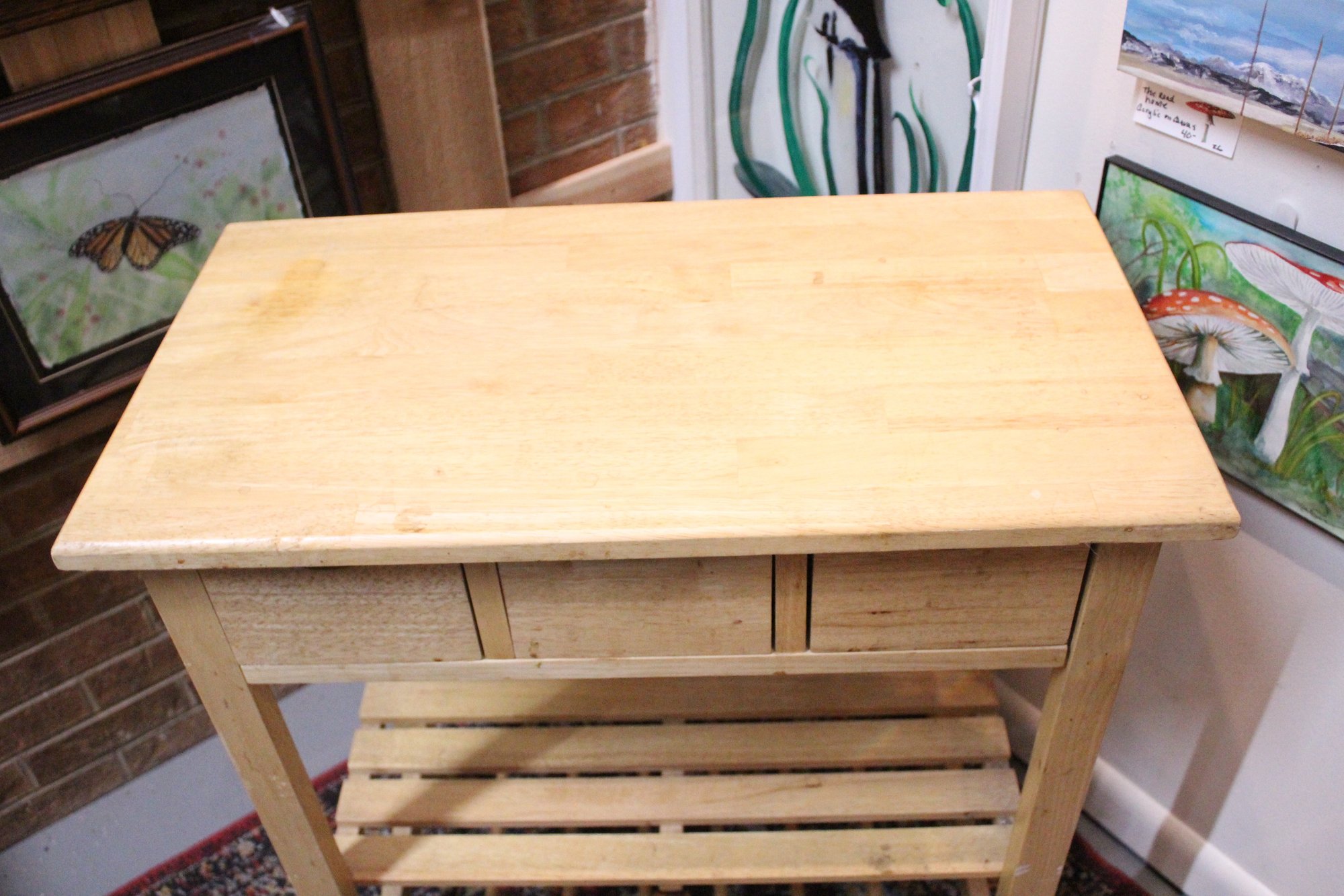 A wooden kitchen island cart, 28" x 15" x 30". This item can not be shipped.