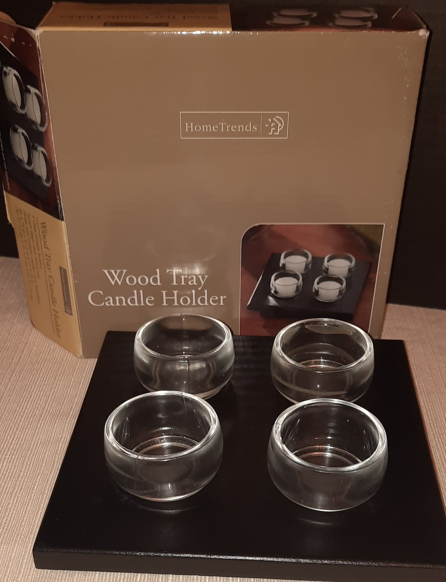 Candle holder wood and glass - new