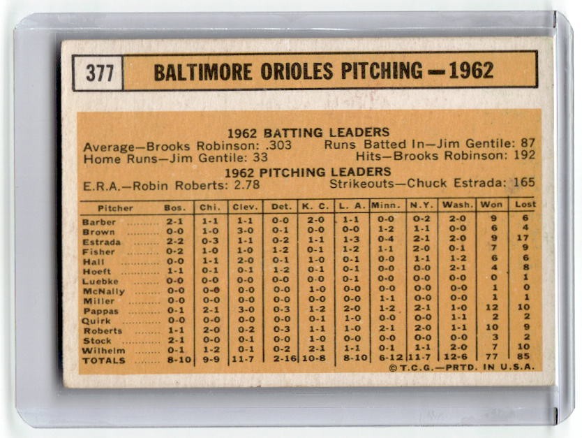 1963 Topps Orioles Team Card