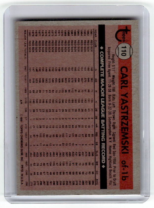 1981 Topps Carl Yastrzemski