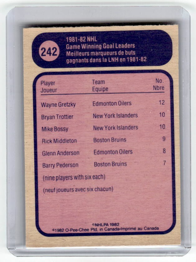 1982 OPC Wayne Gretzky Game Wining Goal Leader