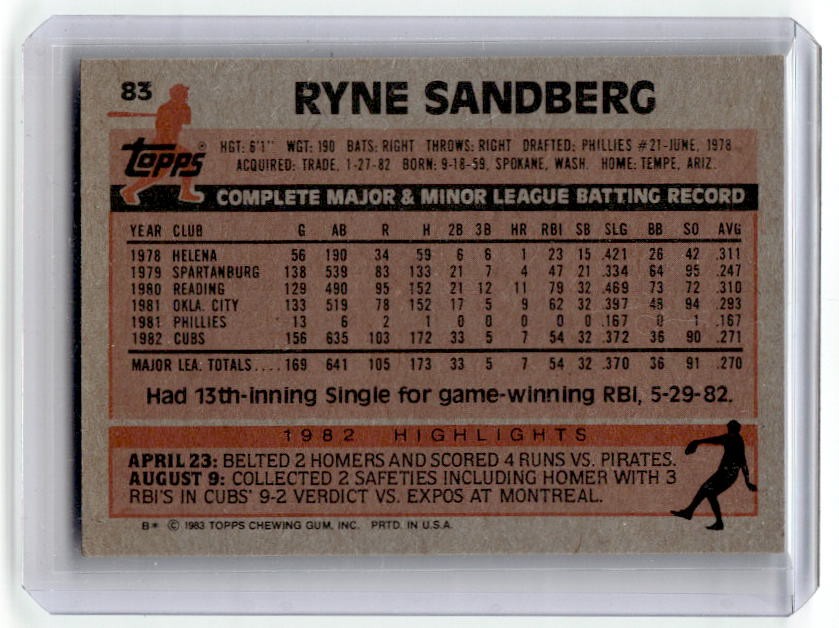 1983 Topps Ryne Sandberg Rookie