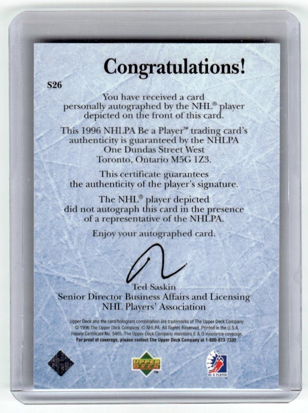 1996 Upper Deck Be A Player Auto Bob. Sweeney