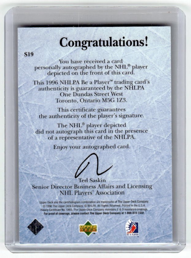 1996 Upper Deck Be A Player Auto Bret Hedican