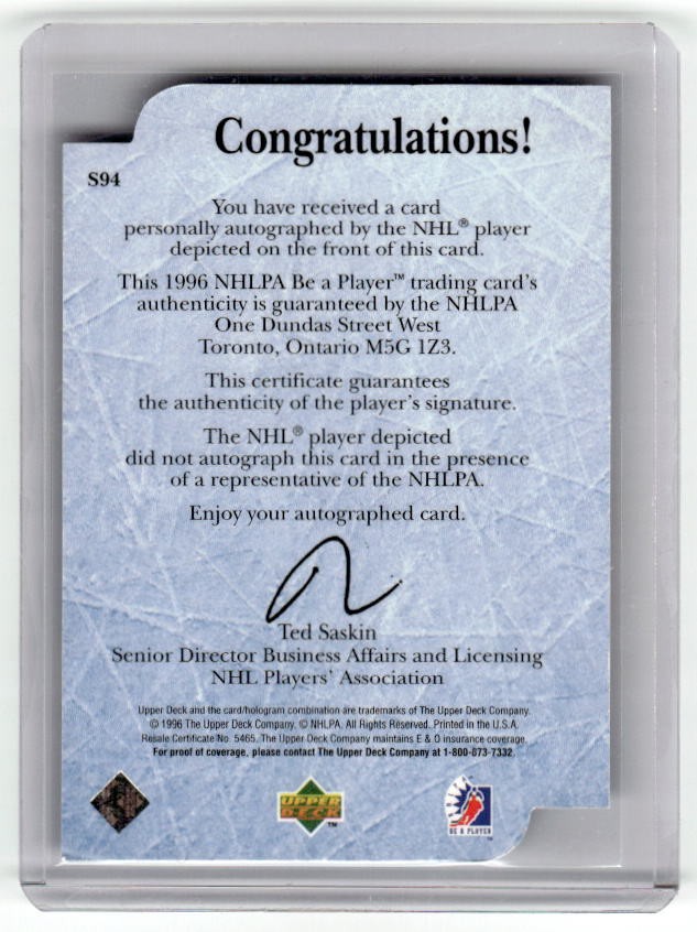 1996 Upper Deck Be A Player Auto Dave Babych
