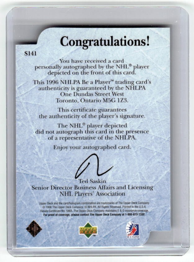 1996 Upper Deck Be A Player Auto Ed Olczyk Die Cut
