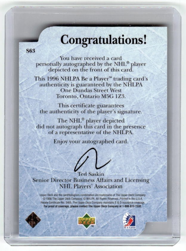 1996 Upper Deck Be A Player Auto Mike Ridley Die Cut
