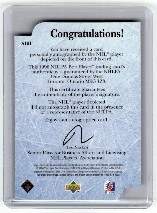 1996 Upper Deck Be A Player Auto Tim Taylor Die Cut
