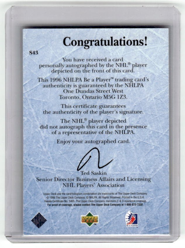1996 Upper Deck Be A Player Auto Tom Chotske