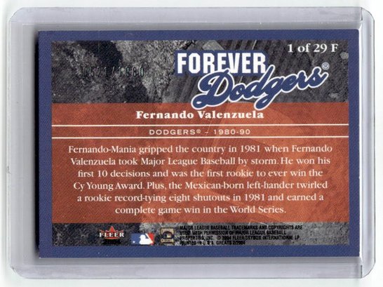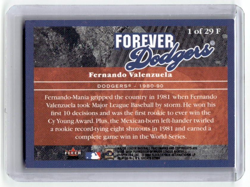 2004 Fleer Great Fernando Valenzuela Forever Dodgers /1980