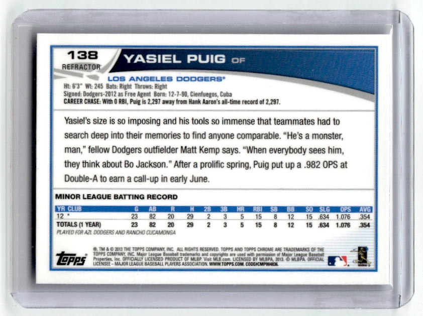 2013 Topps Chrome Yasiel Puig Refractor Rookie