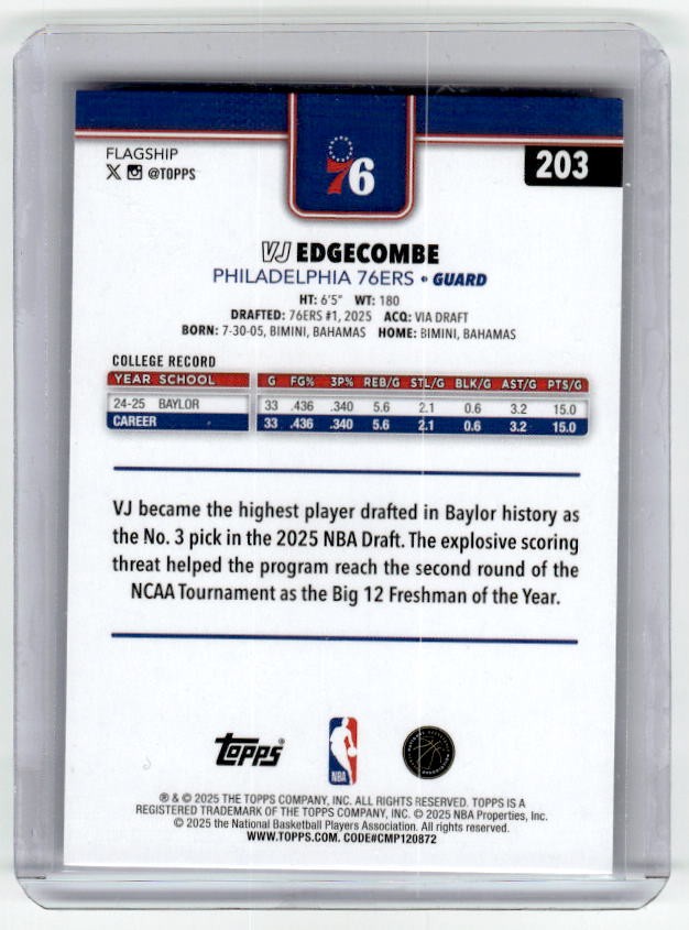 2025 Topps VJ Edgecombe Rookie