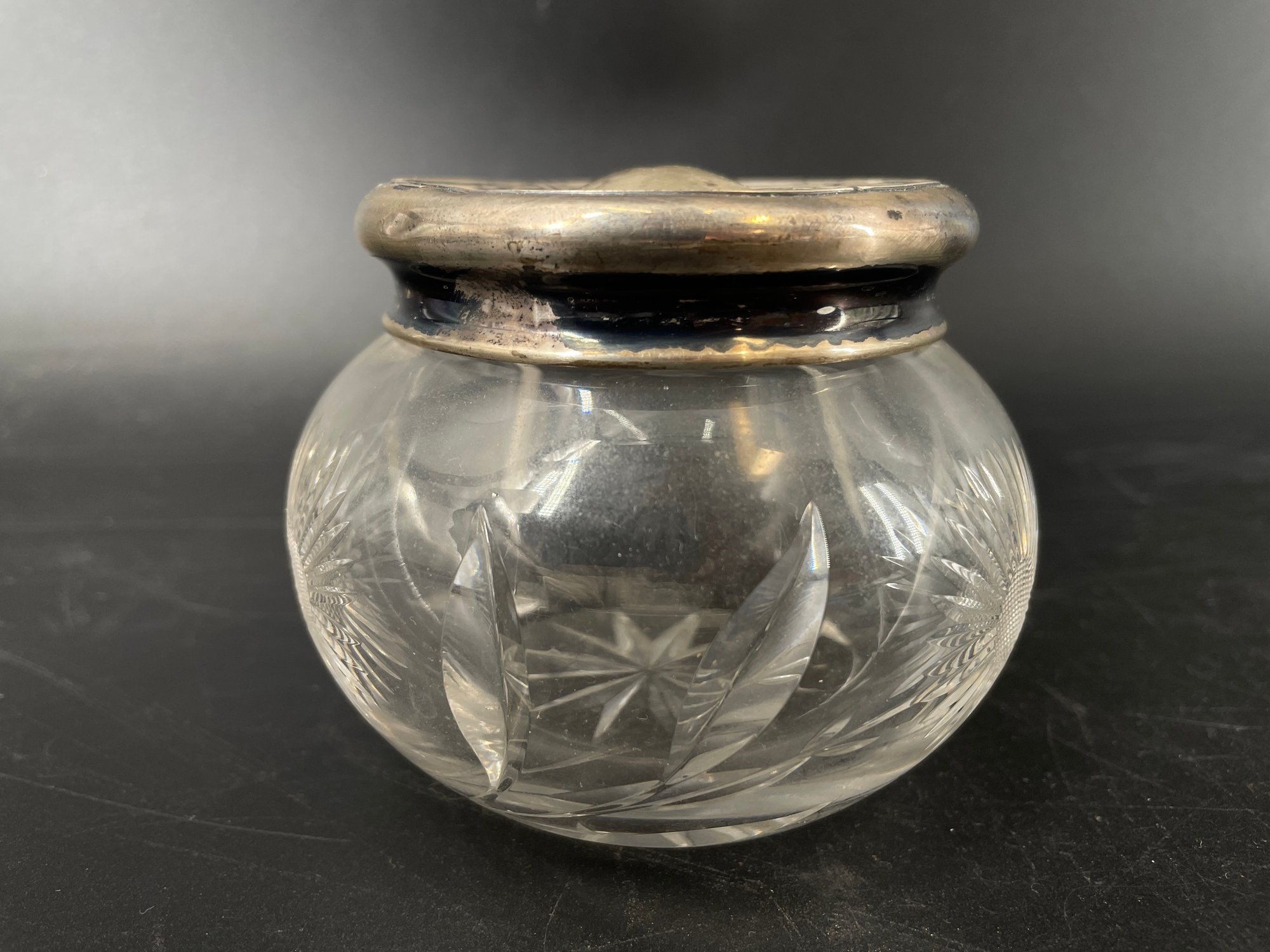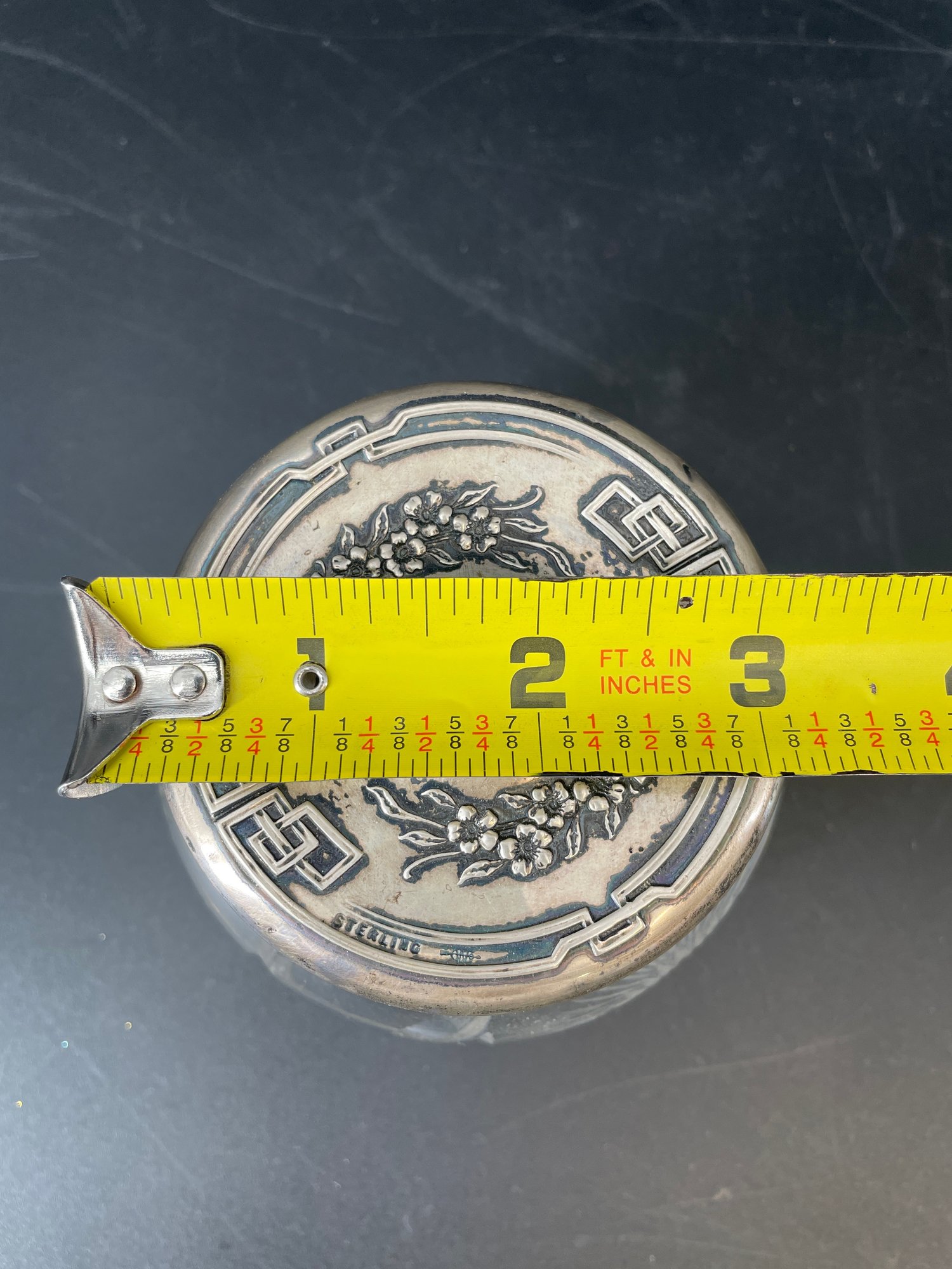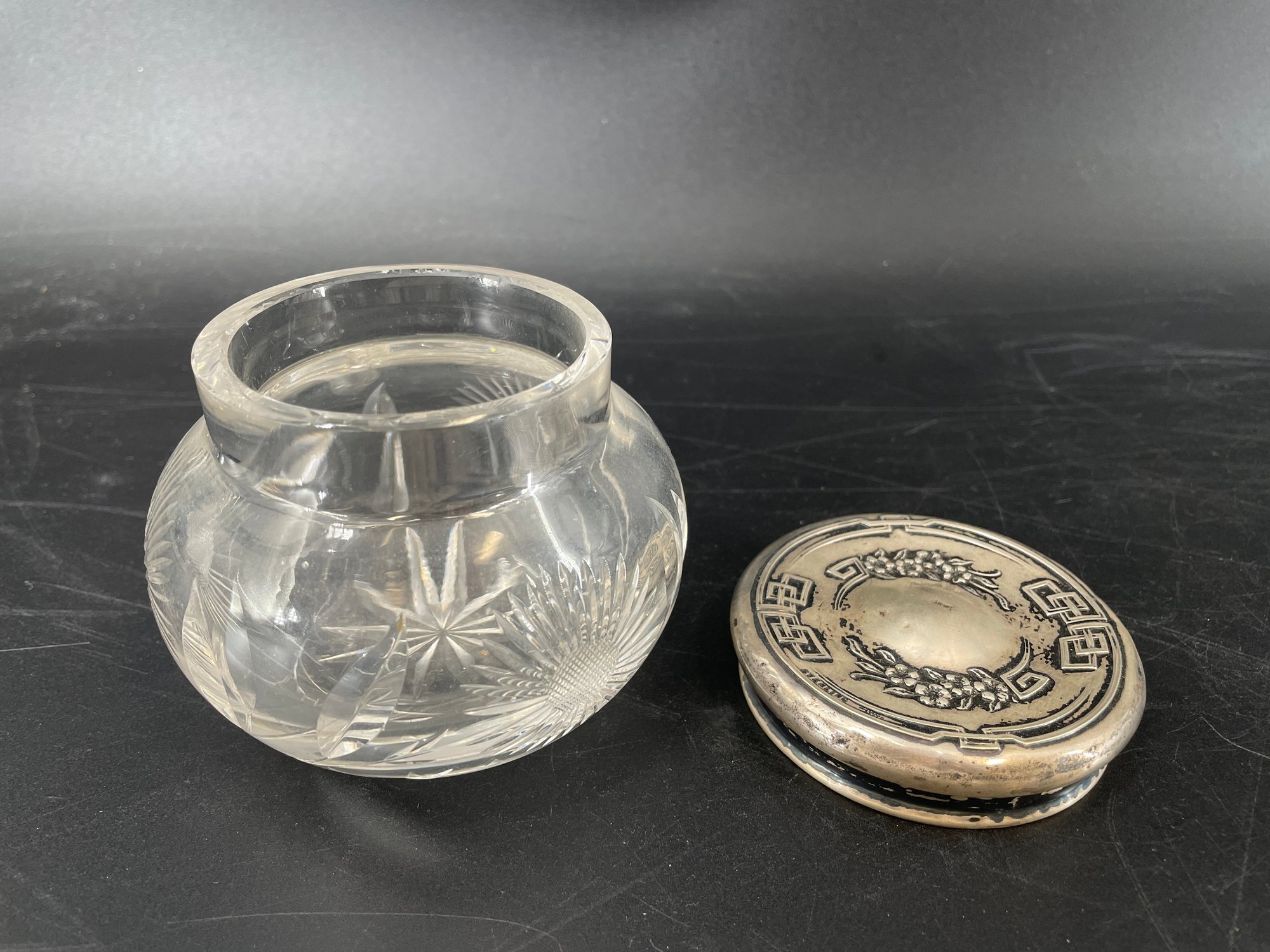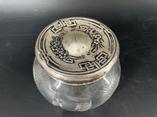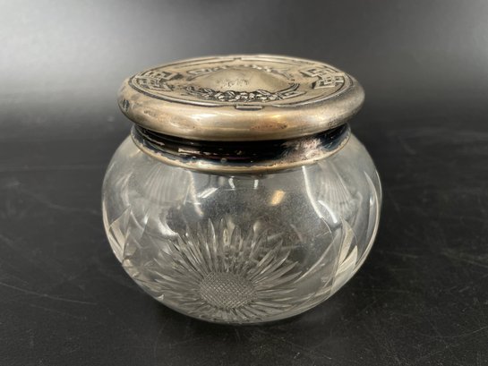 Antique Cut Crystal Vanity Or Dresser Jar With Sterling Lid