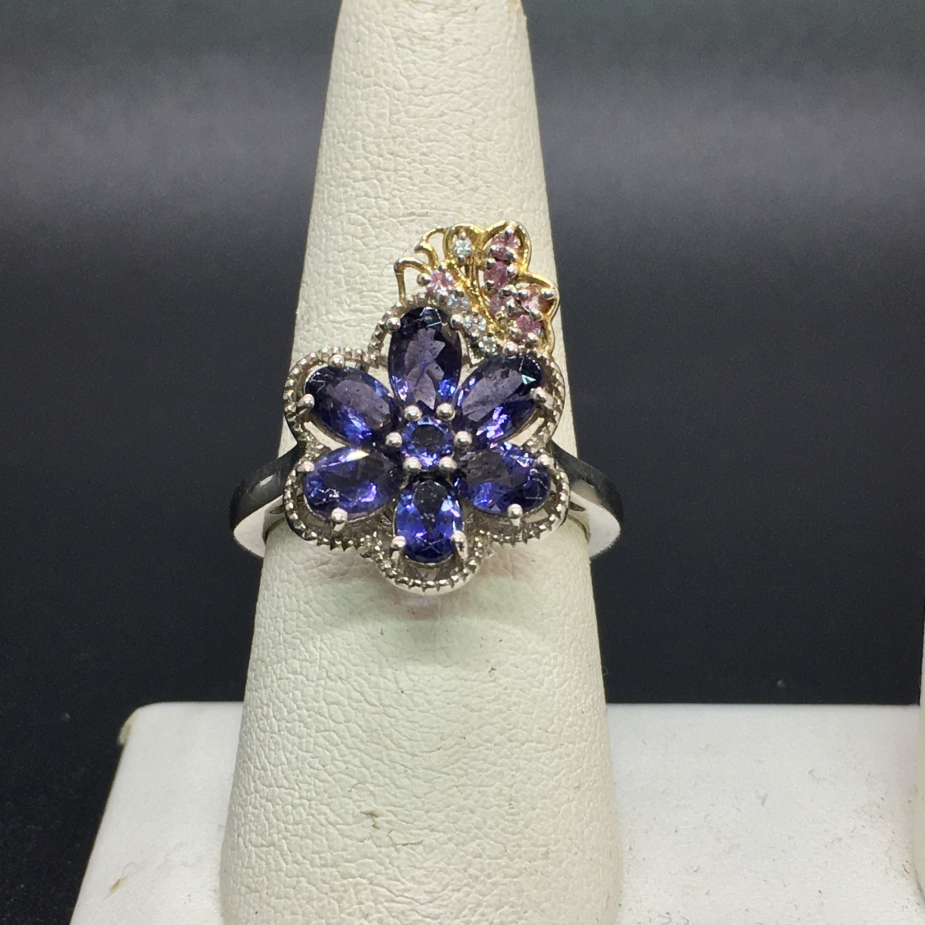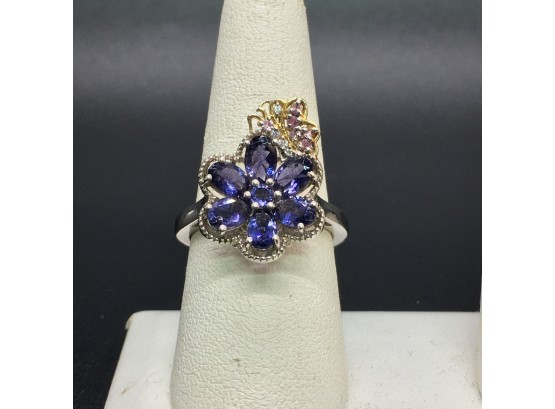 Floral Multi Stone Cluster Flower Sterling Silver Ring