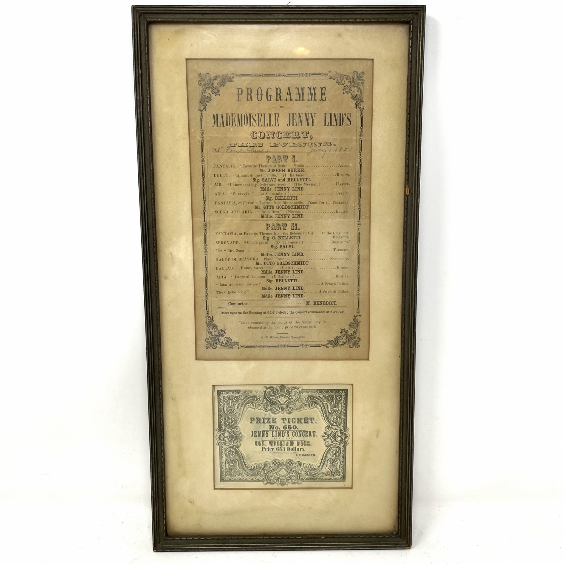 Framed Jenny Linds Program And Ticket