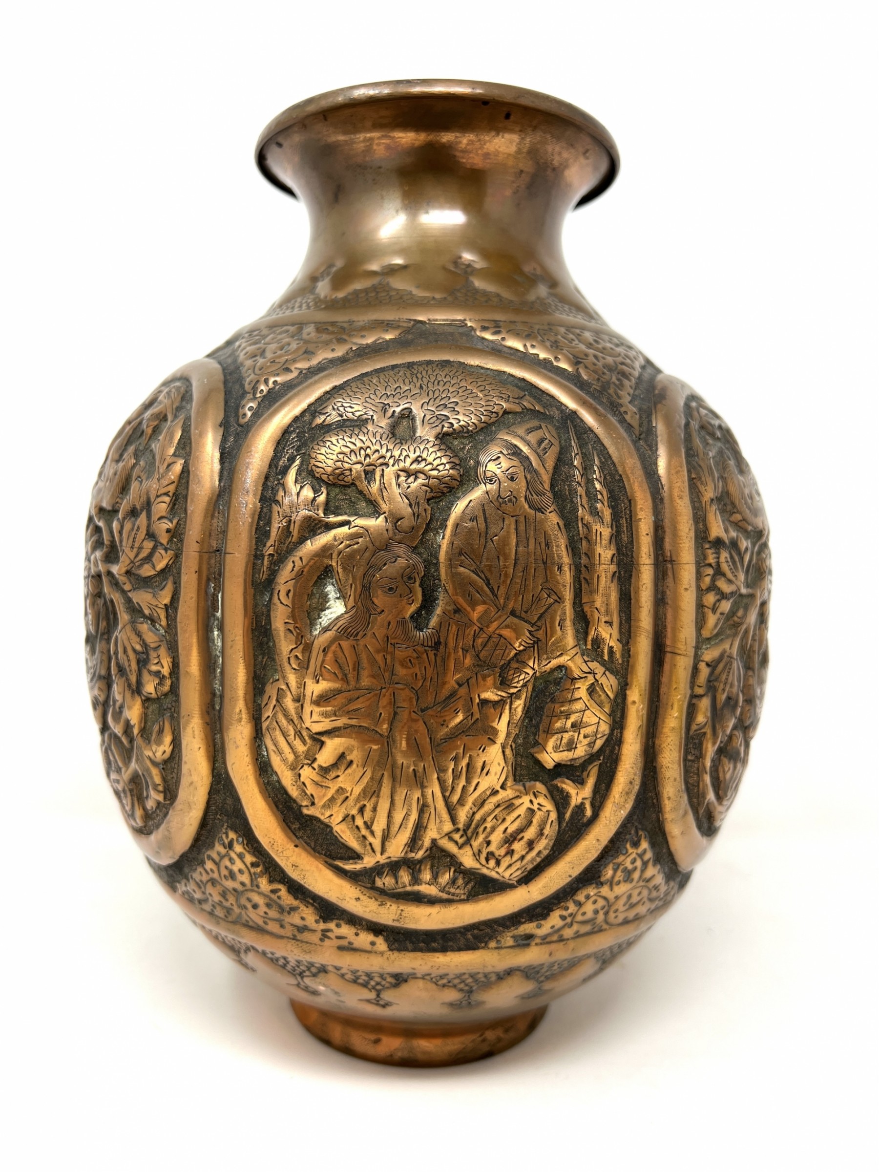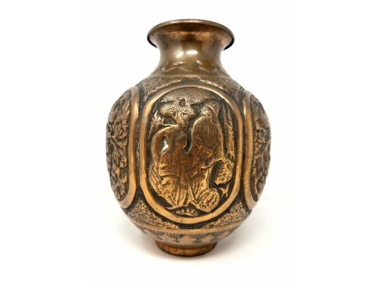 Heavy Indonesian Hand Tooled Copper Vase