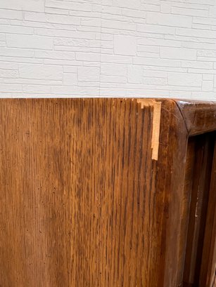 Surface does have marks, as pictured, there is one spot on the left side that does have about an inch or so of veneer loss.