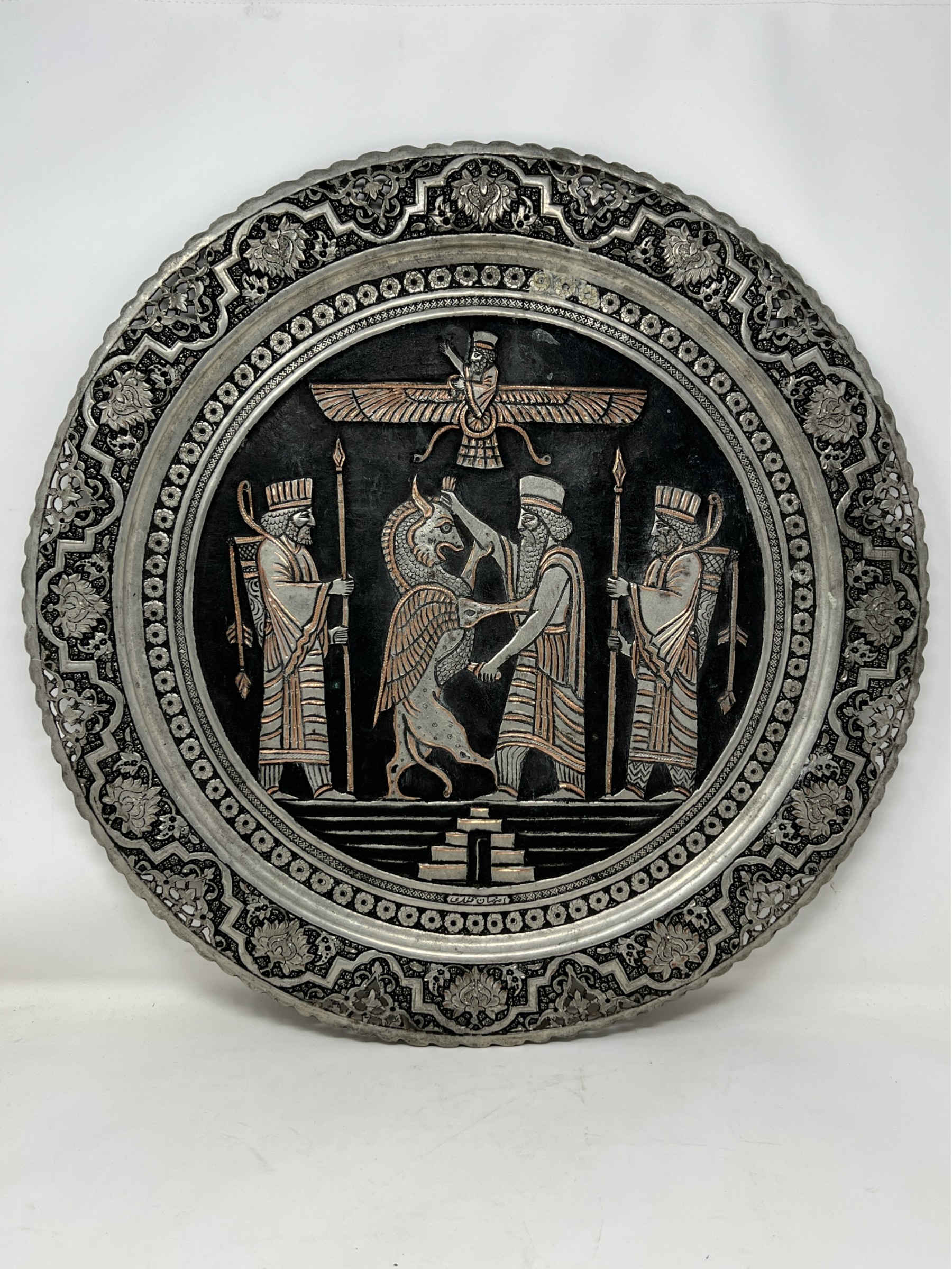 Large Indonesian Hand Tooled Copper Wall Charger