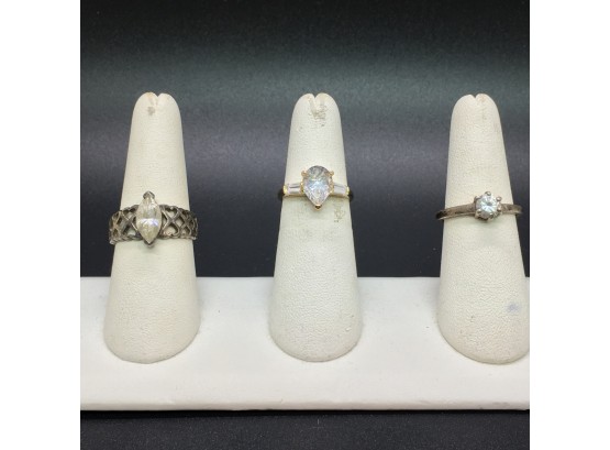 Lot Of 3 Sterling Silver CZ Rings