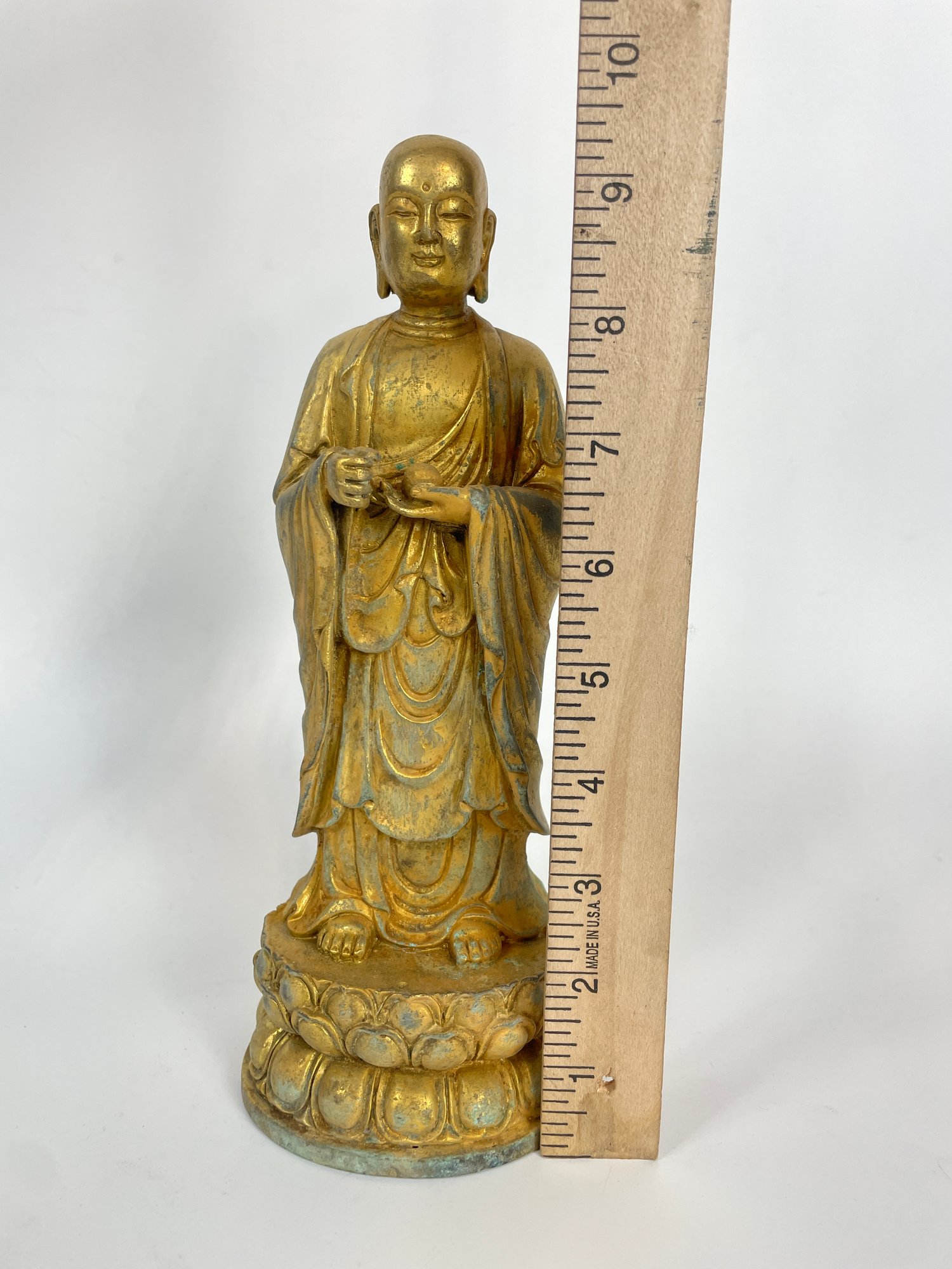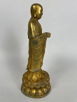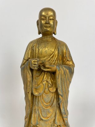 Gilt Bronze Tibetan Buddha Statue, Alter Figure, Bodhisattva King