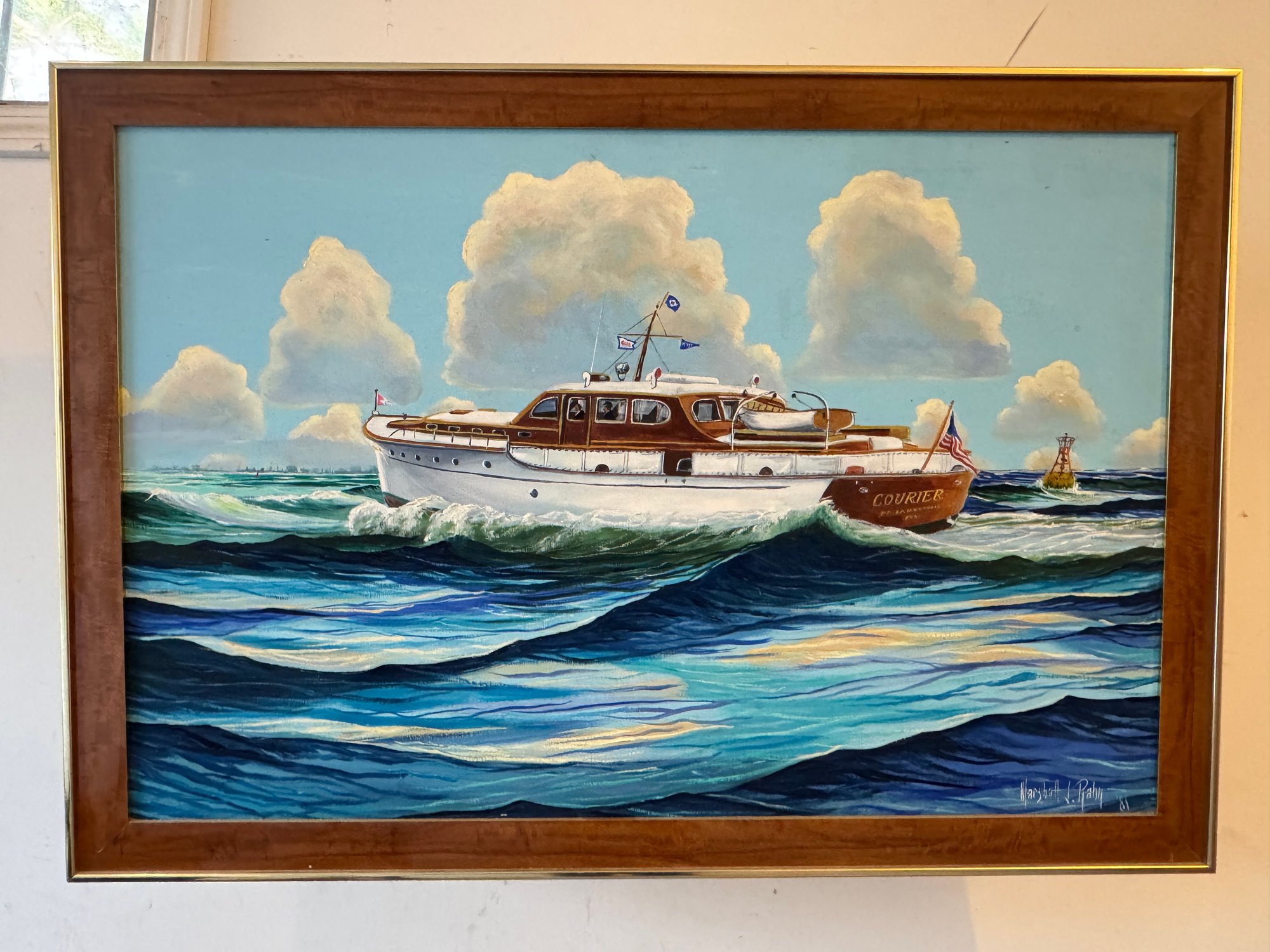 Marshall J. Rahn Oil Painting Of Yacht At Sea "Courier" 1981